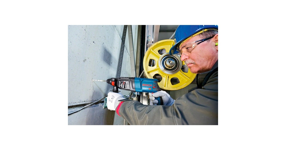 Der Bosch Bohrhammer GBH 2-26 Professional leistet 830 Watt und erzeugt 2,7 Joule Einzelschlagenergie. Er ist der Allrounder im Bosch SDS plus Segment kabelgebundener Bohrhämmer und ideal für den täglichen Einsatz geeignet. Er bietet eine verbesserte Performance und eine hohe Meißelabtragsleistung, und der Rechts-/Linkslauf erleichtert das Lösen bei verklemmten Bohrern. Die SDS-Plus Werkzeugaufnahme ermöglicht einen schnellen Wechsel der Bohrer oder Meißel ohne Werkzeug. Die Überlastkupplung und die besonders robuste Heavy Duty Bauweise schützen den Anwender und verlängern die Lebensdauer des Geräts. Der Bohrhammers GBH 2-26 Professional eignet sich zum Bohren und Meißeln in Beton, Mauerwerk, Holz und Metall. Er ist mit verschiedenen Systemzubehören zur Staubabsaugung kompatibel.Art.-Nr.: 1591907