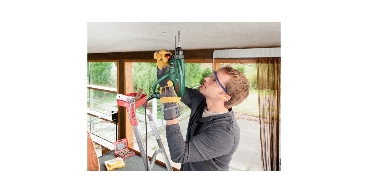Der Bohrhammer PBH 2500 RE von Bosch ist ein besonders handlicher Bohrhammer mit viel Power zum Bohren in Fliesen, Holz und Metall, zum Schrauben und zum Hammerbohren in Beton und Mauerwerk. Bei der Meißelfunktion mit Vario Lock kann man zwischen 36 Meißelpositionen wählen. Das pneumatische Hammerwerk mit 1,9 Joule Schlagstärke sorgt für hohe Schlagkraft in harten Materialien unabhängig vom Anpressdruck. Nur 2,2 kg Arbeitsgewicht und das kompakte Design des Bohrhammer PBH 2500 RE mit Softgrip ermöglichen ein ermüdungsarmes Arbeiten. Die Feststelltaste ermöglicht auch ohne dauerndes Drücken des Schalters den Dauerbetrieb, für bequemes Arbeiten bei umfangreichen Anwendungen. Das Einsatzwerkzeug lässt sich dank SDS-Plus-Werkzeugaufnahme sehr schnell und ohne zusätzlichen Schlüssel wechseln.Art.-Nr.: 1828299