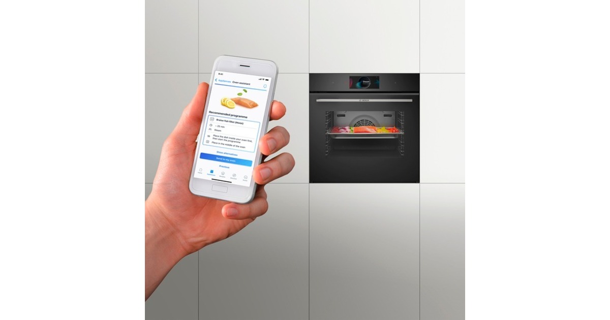 Digitaler Kontrollring; Backofen-Assistent mit Sprachsteuerung (verfügbar mit angeschlossenem Home Connect-Account & Drittanbieter); Remote Diagnostics, Remote Monitoring und Control |