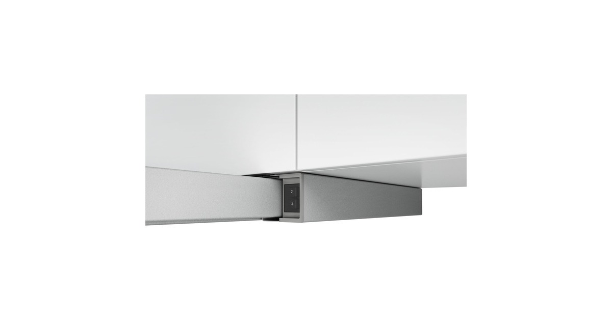 Die Flachschirmhaube Bosch DFL064W53 ist für den Einbau in einen 60 cm breiten Spezial-Oberschrank geeignet und führt den vom Kochfeld aufsteigenden Dunst mit drei Leistungsstufen schnell und restlos ab. Über Wippenschalter lassen sich bei der 60 cm breiten Auszugsesse alle Leistungsstufen und die Arbeitsplatzbeleuchtung mit zwei LED-Lampen à 1,5 Watt bequem steuern. Zudem verfügt sie über ein automatisches Ein- und Ausschalten bei Betätigung des Teleskopauszuges. Der Metall-Fettfilter der DFL064W53 ist spülmaschinengeeignet und kann somit häufiger verwendet werden, was die Umwelt schont.Art.-Nr.: 1746949