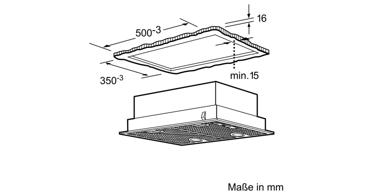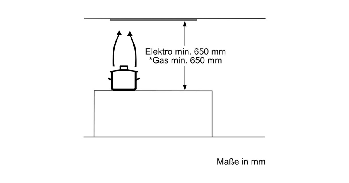 Für vorbereitete Schränke, Essen u.ä. sowie über Kochinseln |