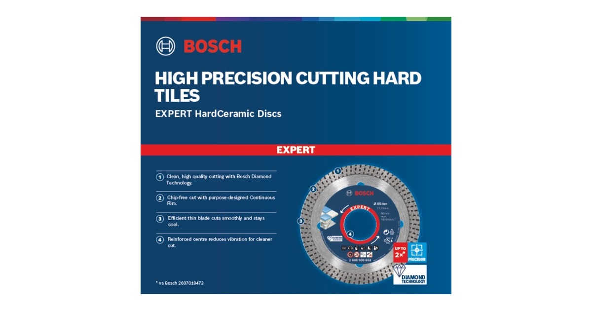 Saubere, hochwertige Schnitte mit Bosch Diamond Technology, bis zu 3-mal präziser als eine Standard-Keramik-Diamanttrennscheibe |