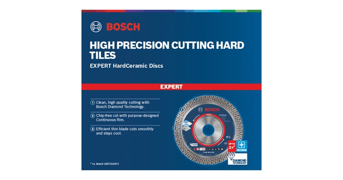 Saubere, hochwertige Schnitte mit Bosch Diamond Technology, bis zu 3-mal präziser als eine Standard-Keramik-Diamanttrennscheibe |