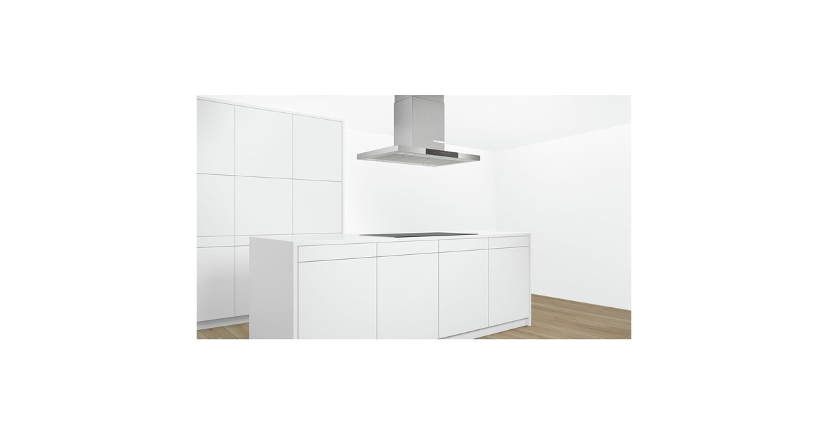 Die Inselhaube Bosch DIB97JP50 eignet sich optimal zur Deckenmontage über Kochinseln. Die 90 cm breite Inselhaube im Box-Design führt die aufsteigende Luft vom Kochfeld mit drei Leistungsstufen und zwei Intensivstufen mit automatischer Rückstellung schnell und restlos ab. Über die DirectSelect-Bedienung mit Lichtlinie lassen sich bei der DIB97JP50 alle Leistungsstufen und die Arbeitsplatzbeleuchtung mit vier dimmbaren LED-Leuchten à 1,5 Watt bequem steuern. Der Metall-Fettfilter ist spülmaschinengeeignet und kann somit häufiger verwendet werden, was die Umwelt schont. Darüber hinaus überzeugt die DIB97JP50 mit einer Sättigungsanzeige für den Metallfett- und Aktivkohlefilter, einem automatischen Gebläsenachlauf sowie einer Randabsaugung.Art.-Nr.: 1498361