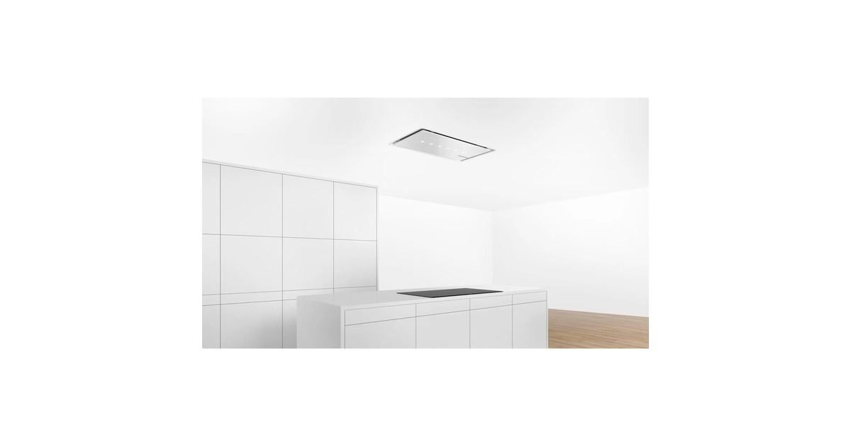 Die Deckenlüftung Bosch DRC99PS20 eignet sich optimal zur Deckenmontage über Kochinseln und führt den aufsteigenden Dampf vom Kochfeld mit drei Leistungsstufen und zwei Intensivstufen mit automatischer Rückstellung schnell und restlos ab. Über die Infrarot-Fernbedienung, via Home Connect oder Sprachsteuerung mittels der gängigen Sprachassistenten lassen sich bei der DRC99PS20 alle Leistungsstufen und die SoftLight-LED-Beleuchtung bequem steuern. Auch eine kochfeldbasierte Haubensteuerung ist mit einem passendem Kochfeld möglich. Der Metall-Fettfilter ist spülmaschinengeeignet und kann somit häufiger verwendet werden, was die Umwelt schont. Darüber hinaus überzeugt die DRC99PS20 mit einer Sättigungsanzeige für den Fett- und Geruchsfilter, einem automatischen Gebläsenachlauf von 10 Minuten sowie einer Randabsaugung.Art.-Nr.: 100021861