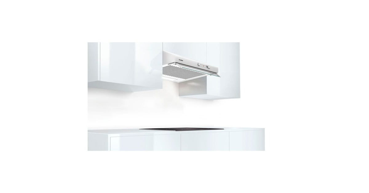 Die Dunstabzugshaube Bosch DUL62FA21 ist für die platzsparende Montage unter einem Hängeschrank oder an der Wand geeignet. Die 60 cm breite Unterbauesse sorgt mit einer Abluftleistung von bis zu 250 m³/h schnell für ein optimales Küchenklima. Ihre drei Leistungsstufen und die LED-Beleuchtung können über Schiebeschalter gesteuert werden und der Vlies-Fettfilter sorgt für die nötige Sauberkeit.Art.-Nr.: 1498373