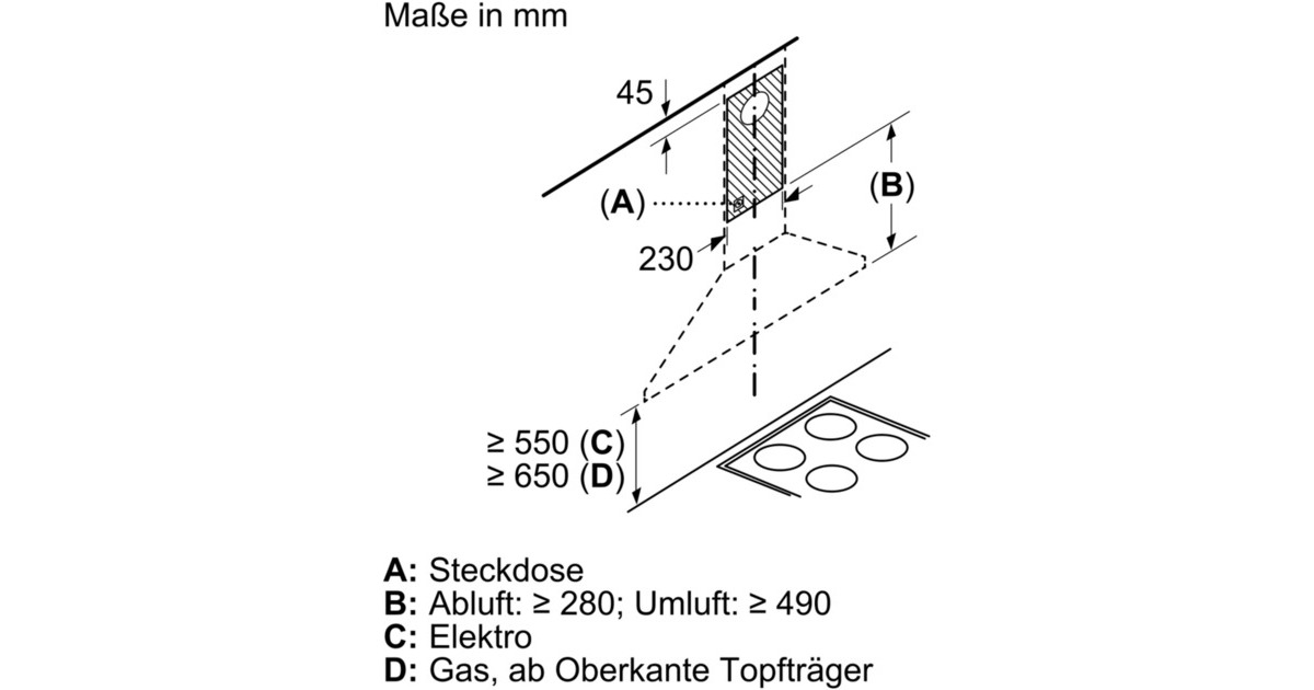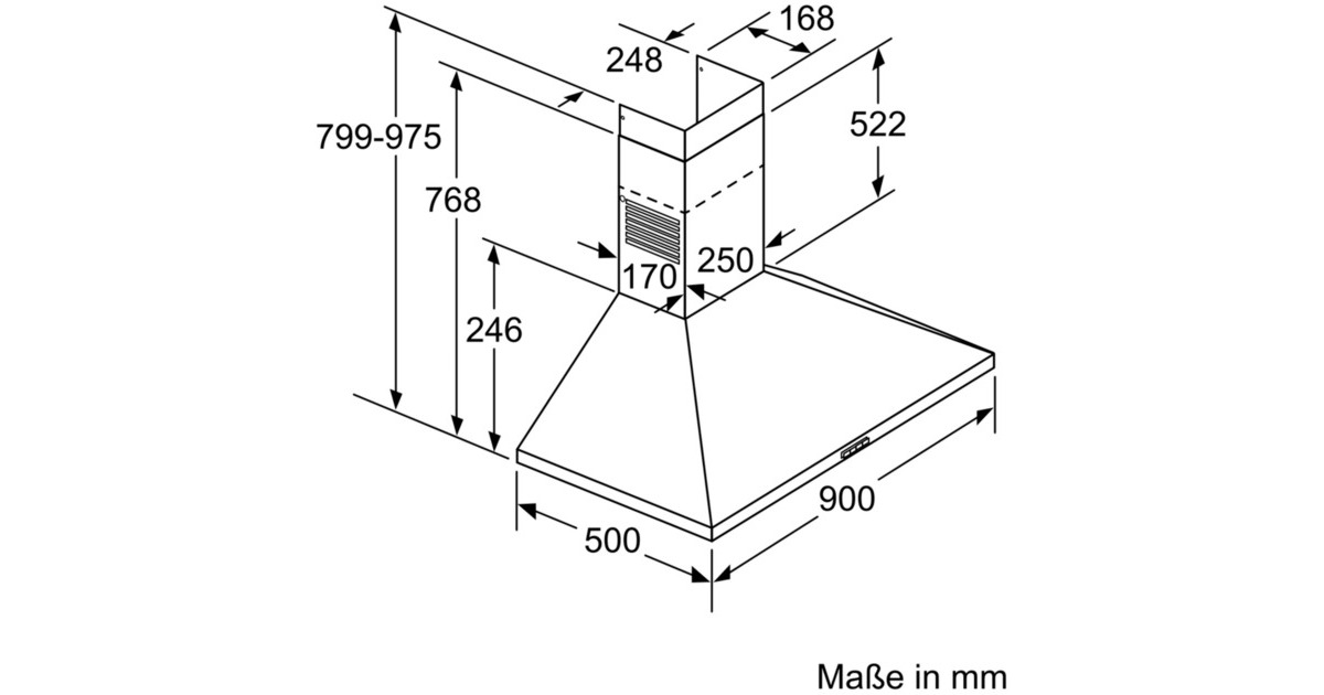 Gerätemaße Abluft (HxBxT): 799-975 x 900 x 500 mm; Gerätemaße Umluft (HxBxT): 799-975 x 900 x 500 mm |
