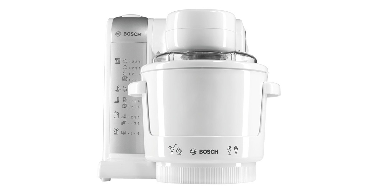 Der Eisbereiter MUZ4EB1 für die Küchenmaschine MUM4 von Bosch ist perfekt geeignet für selbstgemachtes Eis, Sorbet oder Frozen Yoghurt. So kann man individuelle Eiskreationen nach eigenen Vorlieben und ideal für spezielle Ernährungsformen (kalorienarm, fettarm, laktosefrei) zubereiten. Der doppelwandige Kühlbehälter ist passend für handelsübliche Gefrierschränke (mind. -18 Grad). Pro Arbeitsgang können max. 550ml Eis mit perfekter Konsistenz, von cremig-sahnig bis erfrischend fruchtig, hergestellt werden. Das Kühlelement ist einfach und schnell unter fließendem Wasser zu reinigen.Art.-Nr.: 1360354