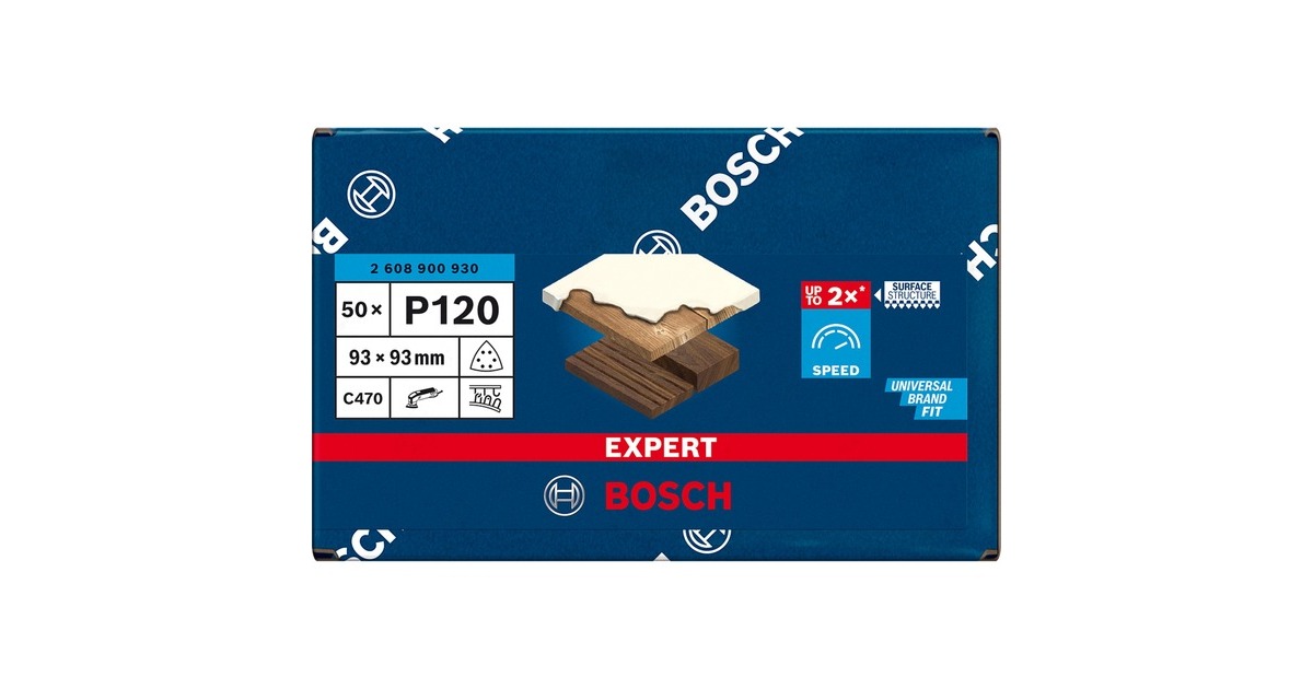Die dreieckigen Bosch Expert Schleifblätter C470 besitzen dank der Bosch Surface Structure eine überragende Materialabtragsrate beim Schleifen von Holz, Farbe, Lack, Rauputz und Füllstoffen. Viele Schleifpapiere setzen sich schnell mit Staub zu und verlieren ihre Abrasivität, wodurch das Schleifen viel mehr Zeit benötigt. Durch die Kombination von scharfen Körnern und spezieller Technologie, welche das Zusetzen verhindert, behält das Expert C470 Schleifpapier seine besonderen Fähigkeiten bei. Das bedeutet, man kann schneller und länger arbeiten, ohne dabei Kompromisse beim Schleifergebnis eingehen zu müssen. Das Schleifblatt C470 im 50er-Vorratspack eignet sich für Deltaschleifer und Multifunktionswerkzeuge der meisten Marken und lässt sich dank des Klett-Befestigungssystems schnell und einfach wechseln und fixieren.Art.-Nr.: 1777242