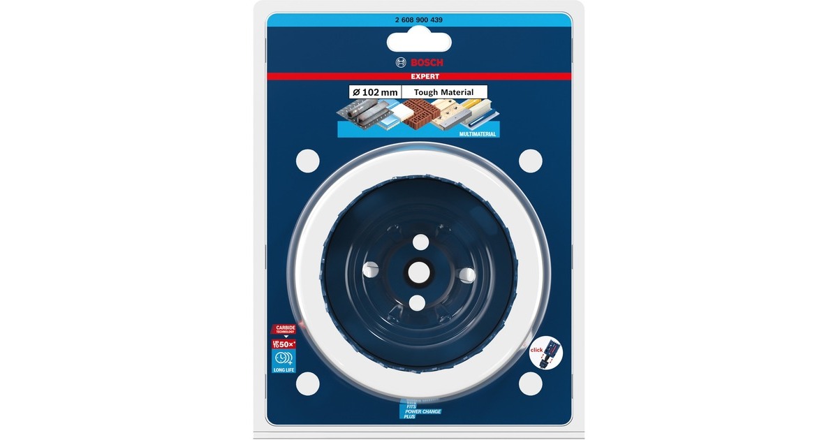 Die Expert Lochsäge 'ToughMaterial', Ø 102mm von Bosch bietet dank der individuell geschliffenen Zähne aus feinem, hartem Carbide eine exzellente Festigkeit und Stabilität für eine maximale Lebensdauer. Viele Lochsägen, die angeblich für mehrere Materialien geeignet sind, funktionieren gut in Holz und weichem Metall. Aber harte Schrauben oder Metallbeschläge haben die Renovierungsarbeiten oft zum Stillstand gebracht, Sägezähne zerstört und die Produktivität beeinträchtigt. Die Expert Lochsäge 'ToughMaterial' hat damit keine Probleme. Es durchtrennt mit seinen Carbide-Zähnen Holz mit gehärteten Nägeln oder Schrauben, Bauholz mit Mörtelresten und Stahlteilen, Ziegelsteine, weiche Fliesen, Edelstahlbleche und Kunststoffe. Das patentiertes Schlitzdesign sorgt dabei für bessere Sicht und einfacheres Auswerfen des Bohrkerns. Die Expert Lochsäge 'ToughMaterial', Ø 102mm eignet sich zur Verwendung mit dem Power Change Plus-Schnellspann-Adapter von Bosch (nicht im Lieferumfang enthalten).Art.-Nr.: 1767935