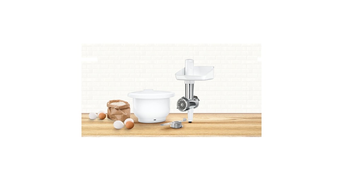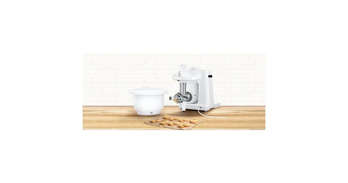Das BakingSensation Set eignet sich für die einfache und schnelle Zubereitung auch von großen Mengen Gebäck - dank Fleischwolf schnell und professionell. Mit dem praktischen Spritzgebäckvorsatz, der im Lieferumfang enthalten ist, lassen sich 4 verschiedene Gebäckvarianten kreieren. Die zusätzliche 3,8 l Kunststoffschüssel sorgt für mehr Flexibilität beim gleichzeitigen Vorbereiten von zwei Teigen und ist besonders gut geeignet für die Zubereitung von Hefeteig. Mit dem Fleischwolf kann man auch gekochtes oder rohes Fleisch, Fisch oder Gemüse für z.B. Tatar oder Pasteten verarbeiten. Das Zubehör passt für MUM Serie 2 Küchenmaschinen.Art.-Nr.: 1786488
