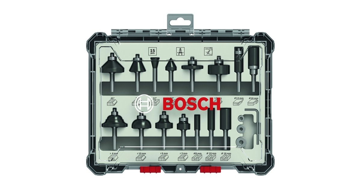 Das Fräser-Set 2607017471 von Bosch eignet sich für die Feinbearbeitung in vielen Anwendungsbereichen und ist die perfekte Wahl für alle, die mit Holz arbeiten, wie Schreiner, Zimmerleute, Innenausbauer und andere Bauhandwerker. Die Hartmetallschneiden der Fräser sorgen für eine lange Lebensdauer, und mit den verschiedenen Fräsergeometrien lassen sich zahlreiche Profile in verschiedene Materialien fräsen. Die Fräser sind für die Bearbeitung von Weich- und Hartholz sowie Holzverbundstoffen vorgesehen und eignen sich für alle gängigen Handfräsen mit 6mm Schaftaufnahme. Der Behälter verfügt über eine spezielle "Easy-Pick"-Einlage, die eine schnelle und sichere Entnahme der Fräser am Schaft ermöglicht. Im exklusiven und äußerst robusten Kasten sind die Fräser fest und sicher untergebracht und der Inhalt bei Lagerung und Transport perfekt geschützt. Durch den Klarsichtdeckel ist der Inhalt jederzeit sichtbar. Das 15-teilige Fräser-Set enthält ein umfassendes Starter-Set, Kantenbearbeitungsfräser zum Bündigfräsen, Anfasen und Abrunden, Nutfräser für Schlitze und Falze, sowie Ersatzteile, drei Kugellager und einen Innensechskant-Schlüssel.Art.-Nr.: 1539444