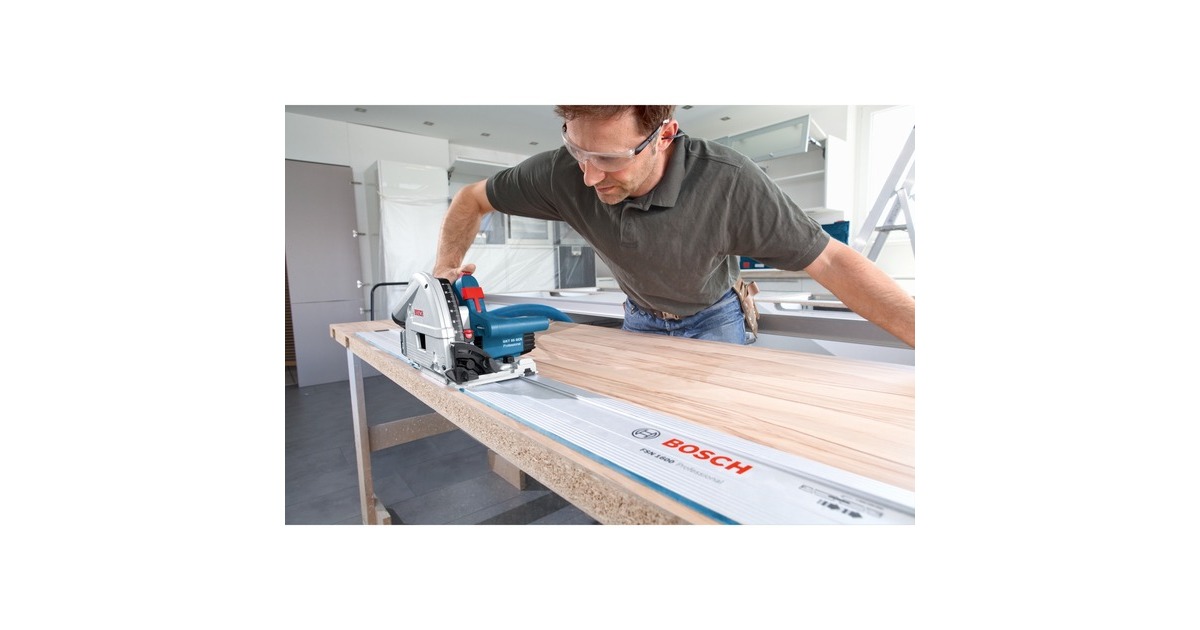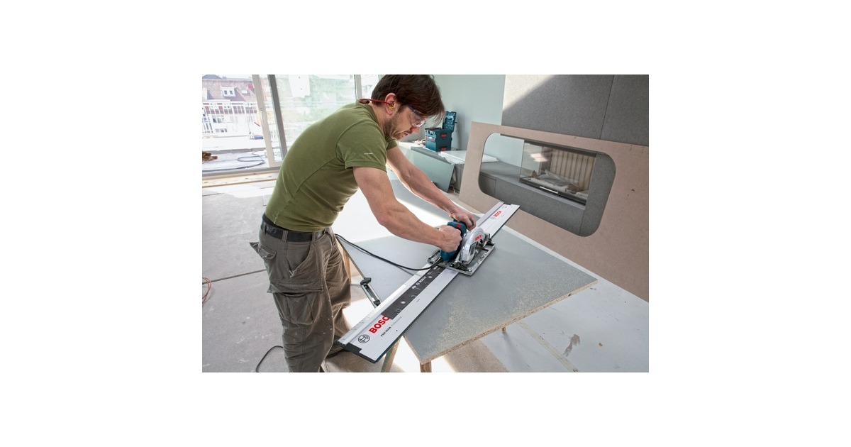 Die 800mm Führungsschiene FSN 800 Professional von Bosch ermöglicht exakte Schnitte. Die qualitativ hochwertige Führungsschiene erlaubt eine präzise Führung und ist perfekt mit allen zugehörigen Elektrowerkzeugen kompatibel. Mit dem Verbindungselement FSN VEL kann man zur Erweiterung zügig eine feste, stabile Verbindung zwischen zwei Führungsschienen herstellen. Dank der leicht austauschbaren, rutschfesten Gummistreifen und des Splitterschutzes bietet sie absolute Kontrolle beim Sägen und sorgt für eine saubere Schnittkante. Die Führungsschiene FSN 800 Professional erzielt in Verbindung mit Tauch- und Kreissägen perfekte Schnittergebnisse. Sie ist mit allen Bosch Professional GKS G Kreissägemodellen und GKT Professional Tauchsägen kompatibel, sowie mit bestimmten GST Professional Stichsägen und GOF Professional Fräsen mithilfe eines Adapters.Art.-Nr.: 1103918