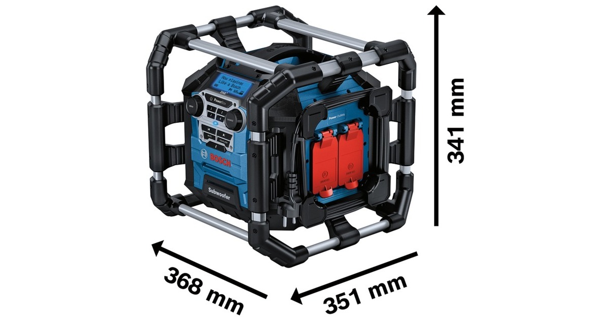 Das Bosch GPB 18V-5 SC ist ein robustes Baustellenradio, welches flexible Audio-Unterhaltung bietet: Neben kristallklarem DAB+ empfängt man auch UKW-Signale und kann eigene Musik unkompliziert via Bluetooth oder 3,5 mm Klinke abspielen. Das Radio ist für den Außeneinsatz konzipiert und verfügt über einen schützenden Überrollkäfig. Insgesamt ist das GPB 18V-5 SC mit vier Lautsprechern je 5 Watt und einem dedizierten Subwoofer mit 20 Watt ausgestattet.Art.-Nr.: 1771166