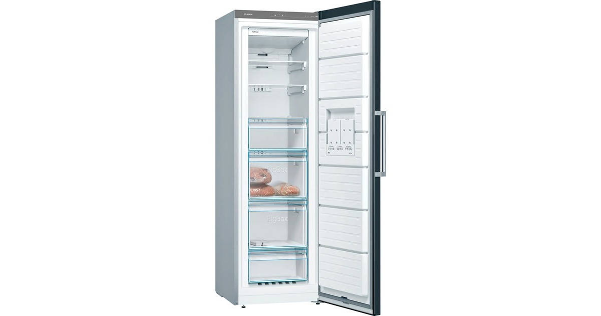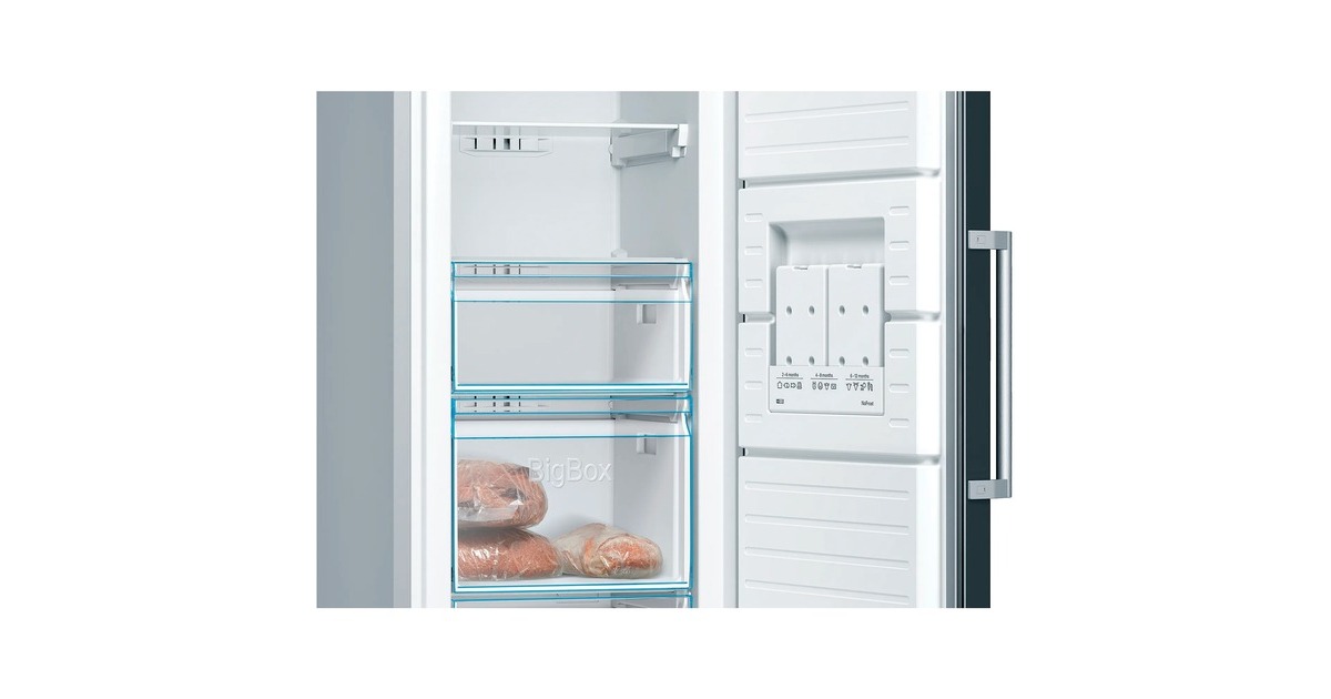 Der Gefrierschrank Bosch GSN36VBEP ist mit einem Gesamtnutzinhalt von 242 Litern ideal für den größeren Haushalt geeignet. Er stellt neben einer easyAccess Zone vier transparente Gefrierschubladen, davon zwei BigBoxen zum Stapeln von Einfrierbehältern oder für großes Gefriergut, zur Verfügung, die sich dank VarioZone einfach herausnehmen und flexibel auf die persönlichen Platzansprüche einstellen lassen. Mit der NoFrost-Technologie wird mühsames Abtauen überflüssig, FreshSense sorgt für eine konstante Temperatur durch intelligente Sensortechnik und die SuperGefrieren-Funktion schützt Tiefgefrorenes beim Einlegen frischer Lebensmittel vor dem Antauen. Die Temperaturregelung des GSN36VBEP erfolgt mittels TouchControl und ist digital ablesbar. Mit einem Stromverbrauch von 234 kWh im Jahr ist der GSN36VBEP in die Energieeffizienzklasse E eingestuft.Art.-Nr.: 100021440