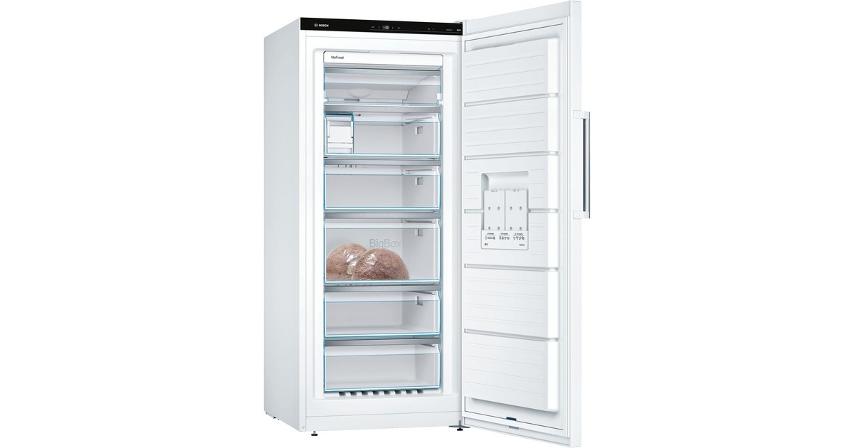 Der Gefrierschrank Bosch GSN51AWCV ist mit einem Gesamtnutzinhalt von 290 Litern ideal für den großen Haushalt geeignet. Er stellt fünf transparente Gefrierschubladen, davon eine bigBox, um großes Gefriergut optimal zu lagern und zu stapeln, sowie ein Gefrierfach mit Klappe zur Verfügung. Alle Gefrierfächer und Glasplatten sind dank varioZone einfach herausnehmbar und lassen sich flexibel auf die persönlichen Platzansprüche einstellen. Dank der noFrost-Technik gegen Eis- und Reifbildung wird mühsames Abtauen überflüssig und freshSense sorgt für eine konstante Temperatur durch intelligente Sensortechnik. Die SuperGefrieren-Funktion senkt für einen definierten Zeitraum die Temperatur zum schnelleren Einfrieren von neu eingelagerten Lebensmitteln. Die Temperaturregelung des GSN51AWCV erfolgt elektronisch und ist digital ablesbar. Besonders komfortabel ist der herausnehmbare IceTwister für Eiswürfel nach Wunsch. Mit einem Stromverbrauch von 161 kWh im Jahr ist der GSN51AWCV in die Energieeffizienzklasse C eingestuft.Art.-Nr.: 1746722