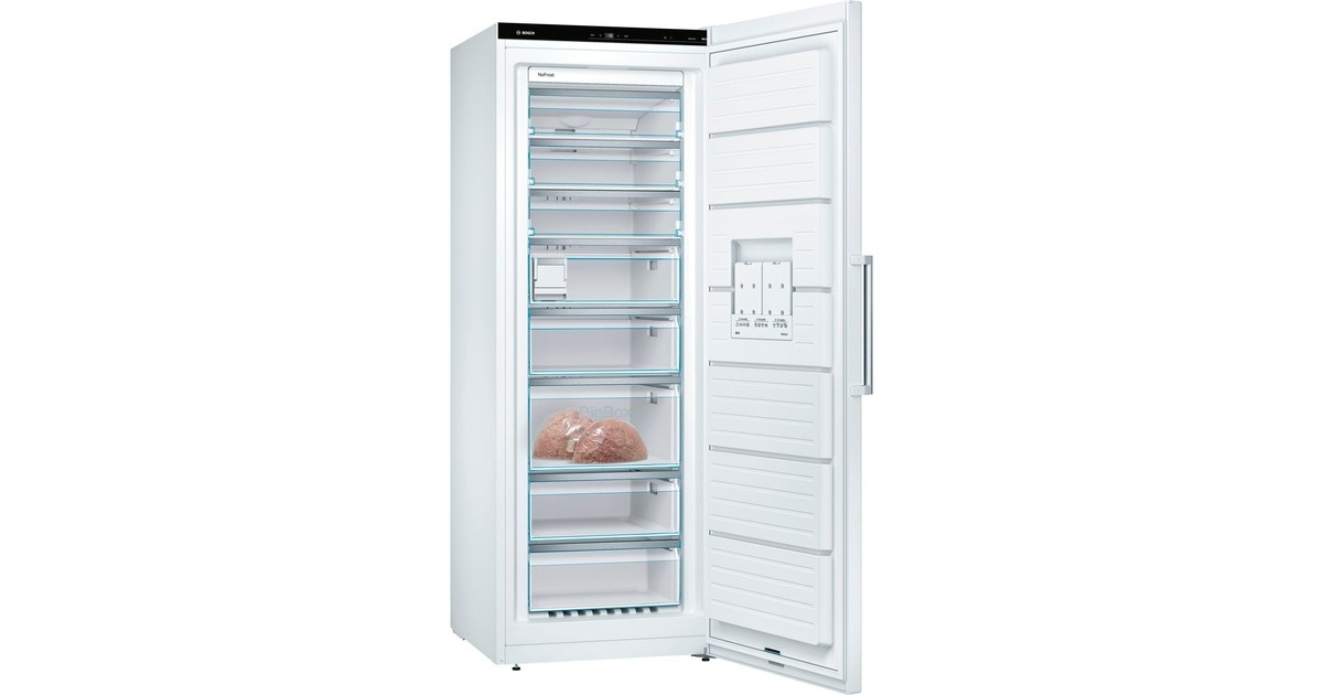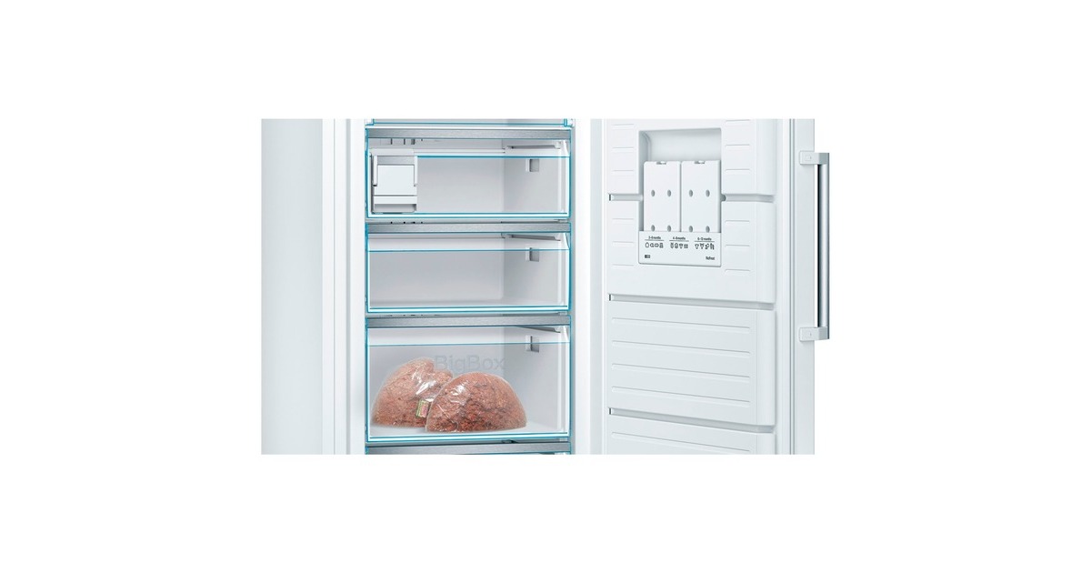 Der Gefrierschrank Bosch GSN58AWDV ist mit einem Gesamtnutzinhalt von 366 Litern ideal für den größeren Haushalt geeignet. Er stellt fünf transparente Gefrierschubladen, davon eine bigBox, um großes Gefriergut optimal zu lagern und zu stapeln, sowie drei Gefrierfächer mit Klappe zur Verfügung. Alle Gefrierfächer und Glasplatten sind dank varioZone einfach herausnehmbar und lassen sich flexibel auf die persönlichen Platzansprüche einstellen. Dank der noFrost-Technik gegen Eis- und Reifbildung wird mühsames Abtauen überflüssig und freshSense sorgt für eine konstante Temperatur durch intelligente Sensortechnik. Die SuperGefrieren-Funktion senkt für einen definierten Zeitraum die Temperatur zum schnelleren Einfrieren von neu eingelagerten Lebensmitteln. Die Temperaturregelung des GSN58AWDV erfolgt elektronisch und ist digital ablesbar. Besonders komfortabel ist der herausnehmbare IceTwister für Eiswürfel nach Wunsch. Mit einem Stromverbrauch von 222 kWh im Jahr ist der GSN58AWDV in die Energieeffizienzklasse D eingestuft.Art.-Nr.: 1628561