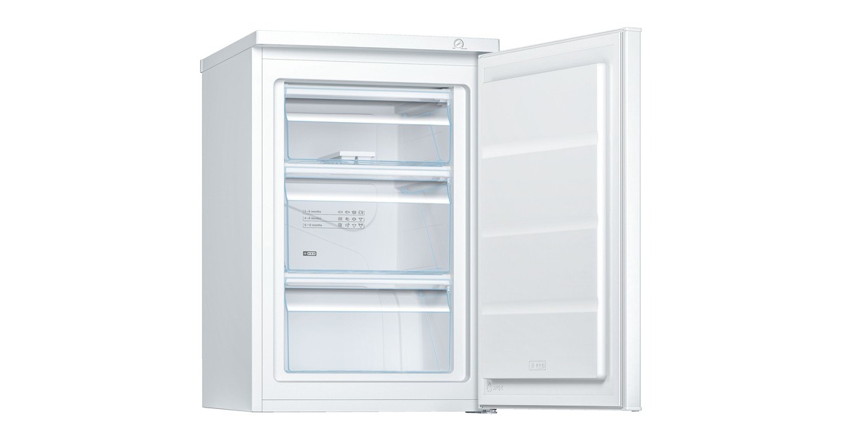 Der Gefrierschrank Bosch GTV15NWEA stellt einen Nutzinhalt von 83 Litern zur Verfügung und ist mit drei transparenten Gefriergutschubladen ausgestattet. Innerhalb von 24 Stunden friert er bis zu 10 Kilogramm Lebensmittel ein. Dank seiner kompakten Maße sowie dem wechselbaren Türanschlag lässt sich der GTV15NWEA flexibel platzieren. Die Temperaturregelung erfolgt mechanisch über einen Drehwähler. Mit einem Stromverbrauch von 164 kWh im Jahr ist der GTV15NWEA in die Energieeffizienzklasse E eingestuft.Art.-Nr.: 1666188