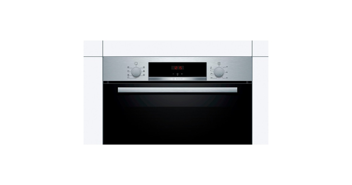 Der Einbau-Backofen Bosch HBA533BS1 in edelstahl ist mit einem Nutzinhalt von 71 Litern optimal für jede Küche geeignet und lässt sich als Einbaugerät nahezu überall platzieren. Fünf Heizarten, wie die 3D Heißluft für perfekte Ergebnisse dank optimaler Wärmeverteilung auf bis zu drei Ebenen gleichzeitig, lassen sich bequem über versenkbare Bedienknebel einstellen. Die Bedienung mit rotem LCD-Display ist dank direktem Zugriff auf Zeitfunktionen besonders einfach. Mit der energiesparenden Reinigungsunterstützung EcoClean Direct hat man kaum Putzaufwand dank einer speziellen Beschichtung der Rückwand, die Fette automatisch absorbiert. Die Granit-Emaillebeschichtung der Backofeninnenwände erleichtert die Reinigung und Pflege des Geräts ebenfalls. In puncto Sicherheit bleiben beim HBA533BS1 mit eingebauter Kindersicherung und Kühlgebläse keine Wünsche offen.Art.-Nr.: 1509142