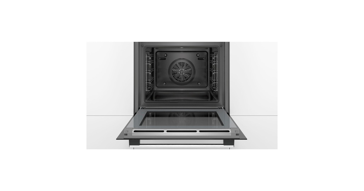 Der Einbau-Backofen Bosch HBA578BS0 in Edelstahl ist mit einem Nutzinhalt von 71 Litern optimal für jede Küche geeignet, lässt sich als Einbaugerät nahezu überall platzieren und überzeugt mit zahlreichen Funktionen. Zehn Heizarten und 30 Automatikprogramme lassen sich bequem über versenkbare Bedienknebel und das LED-Display einstellen und machen das Kochen und Backen für angehende Köche zum reinsten Vergnügen. Mit der Pyrolyse-Selbstreinigung erledigt sich die anstrengende, zeitaufwendige Reinigung von selbst – und das ganz ohne chemische Reinigungsmittel. In puncto Sicherheit bleiben beim HBA578BS0 mit eingebauter Kindersicherung, Restwärmeanzeige , Sicherheitsabschaltung und Kühlgebläse keine Wünsche offen.Art.-Nr.: 1384381