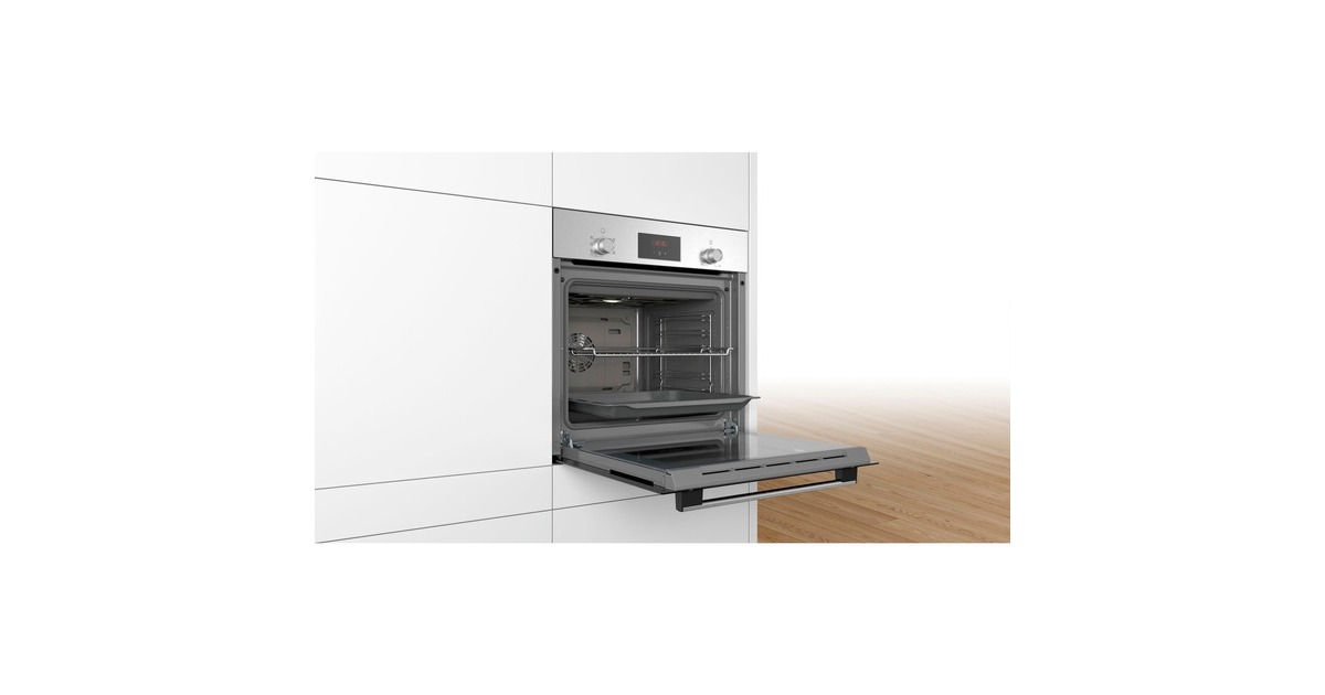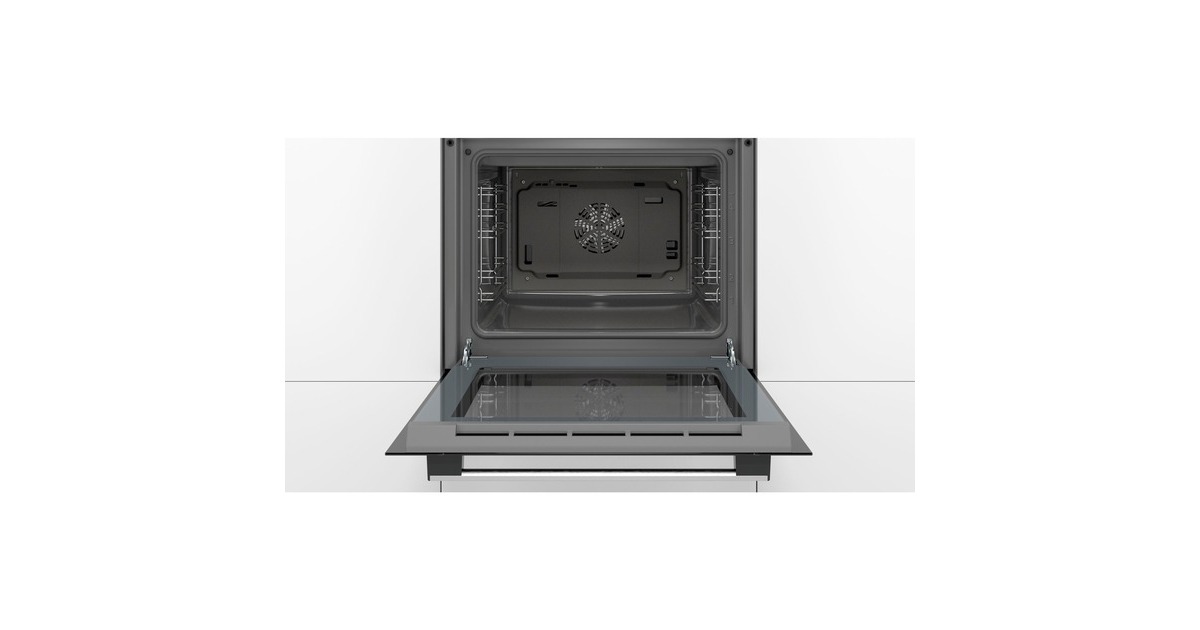 Der Backofen Bosch HBF133BR0 überzeugt mit einem Backraumvolumen von 66 Litern und 5 Heizarten sowie einer zuschaltbaren Schnellaufheizfunktion. Die 3D-Heißluft sorgt für optimale Backergebnisse auf bis zu drei Ebenen gleichzeitig dank innovativer Wärmeverteilung. Mit der energiesparenden Reinigungshilfe EcoClean Direct hat man kaum Putzaufwand dank einer speziellen Beschichtung der Rückwand, die Fette automatisch absorbiert. Die Granit-Emaillebeschichtung erleichtert dank glatter Oberflächen die Reinigung des Innenraums ebenfalls.Art.-Nr.: 1633984