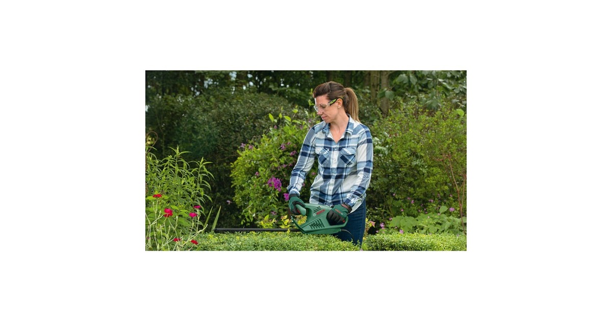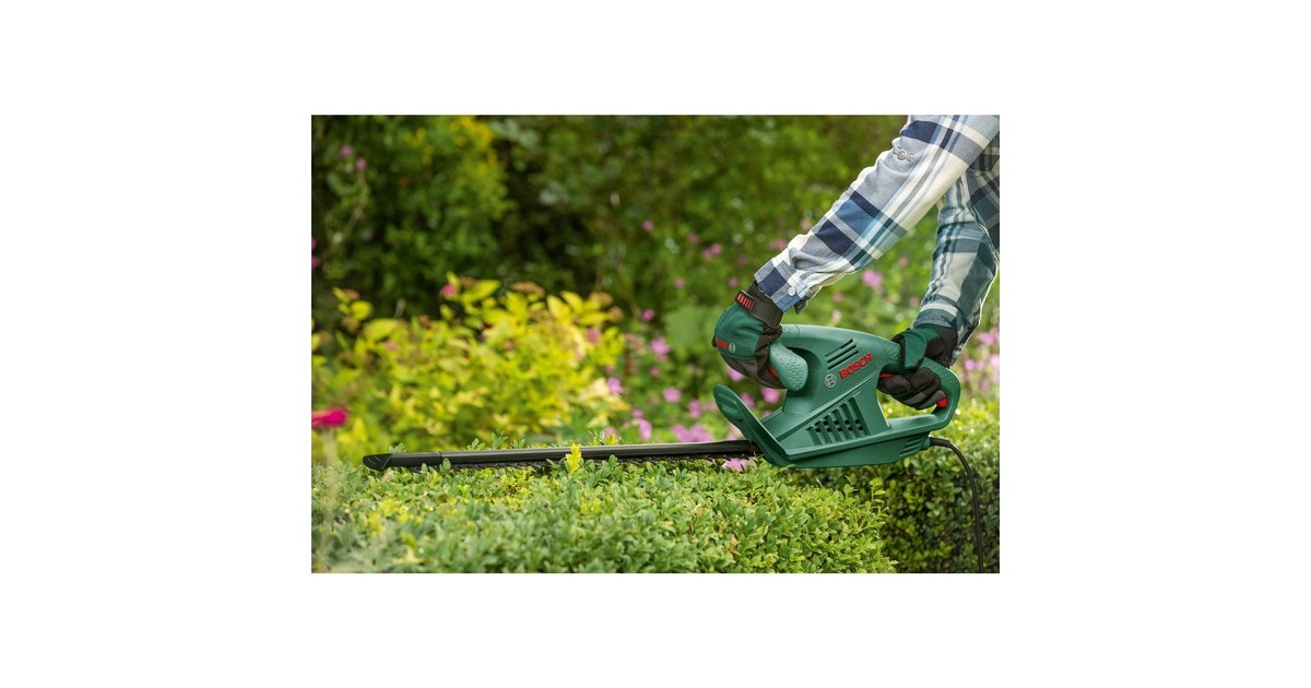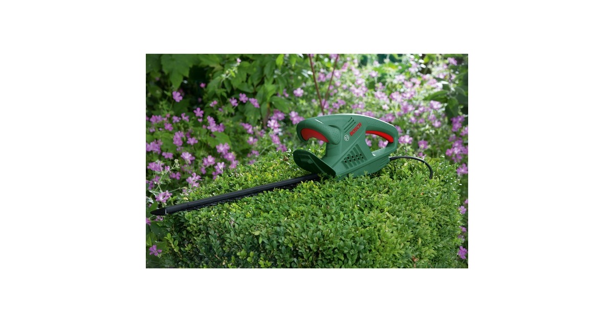 Die Heckenschere EasyHedgeCut 45 von Bosch ist leicht und gut ausbalanciert, ideal zum Trimmen kleiner Hecken. Das geringe Gewicht und das kompakte Design erlauben einfaches Handling und perfekte Kontrolle in jeder Position. Der durchzugsstarke 420 Watt Motor sorgt für kraftvolle, schnelle und saubere Schnitte. Auch das Trimmen dickerer Äste ist ohne Unterbrechungen möglich, dank des Bosch Anti-Blockier-Systems. Der Messerschutz schützt die diamantgeschliffenen Messer bei Schnitten entlang von Mauern und am Boden.Art.-Nr.: 1827784