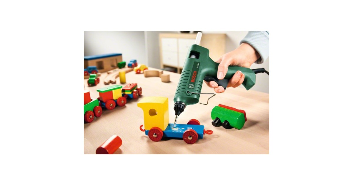 Die Bosch Heißklebepistole PKP 18 E ist ideal zum Fixieren, Modellieren, Reparieren, Abdichten und Verfugen. Sie klebt alles mit allem: Holz, Kunststoff, Keramik, Metall, Glas, Textilien, Leder und vieles mehr. Elektronisch geregelte Heizelemente sorgen für schnelle Einsatzbereitschaft und konstante Arbeitstemperatur. Ein mechanischer Vorschub ermöglicht ein feinfühliges Dosieren und gezieltes, zügiges Auftragen des Klebers.Art.-Nr.: 985947