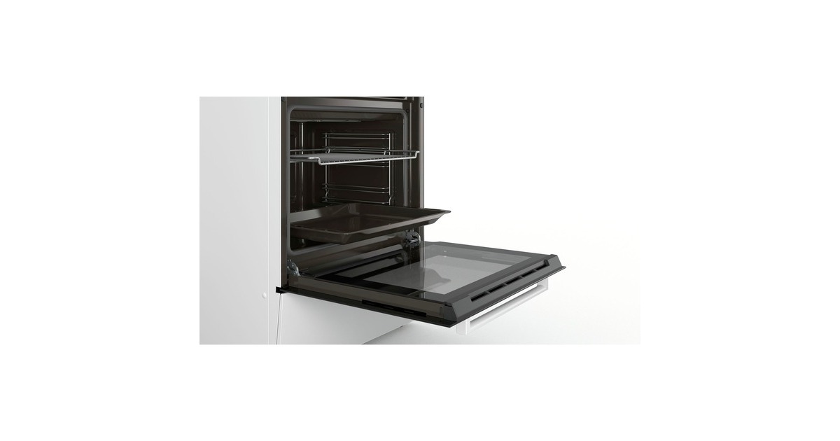 Der Standherd Bosch HKA090220 ist mit einem Nutzinhalt von 66 Litern optimal für jede Küche geeignet und lässt sich als Standgerät nahezu überall plazieren. Sieben Heizarten machen das Backen und Garen für angehende Köche zur Leichtigkeit. Die 3D-Heißluft sorgt für perfekte Ergebnisse dank optimaler Wärmeverteilung auf bis zu 3 Ebenen gleichzeitig und mit der Schnellaufheizung gelangt man schneller zur gewünschten Backtemperatur. Das Glaskeramik Kochfeld mit vier HighSpeed-Kochzonen bietet dank Zweikreis-Kochzone und zuschaltbarer Bräterzone auch für großes Kochgeschirr genügend Platz.Art.-Nr.: 1509120