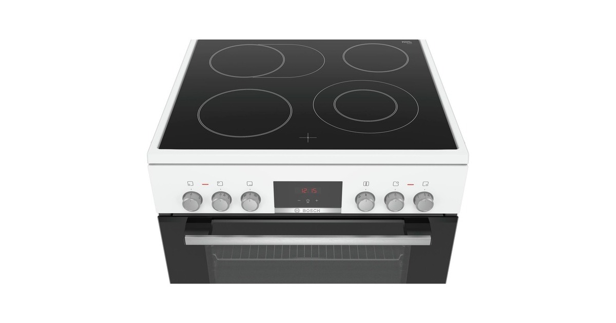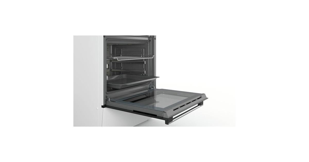 Der Standherd Bosch HKR39C220 ist mit einem Nutzinhalt von 66 Litern optimal für jede Küche geeignet und lässt sich als Standgerät nahezu überall plazieren. Sieben Heizarten machen das Backen und Garen für angehende Köche zur Leichtigkeit. Die 3D-Heißluft sorgt für perfekte Ergebnisse dank optimaler Wärmeverteilung auf bis zu 3 Ebenen gleichzeitig und mit der Schnellaufheizung gelangt man schneller zur gewünschten Backtemperatur. EcoClean Direct ermöglicht eine mühelose Reinigung dank spezieller Beschichtung der Rückwand, die Fette automatisch absorbiert. Die Versenkknebel ermöglichen eine leichte Reinigung der Bedienoberfläche. Die Bedienung mit rotem LCD-Display ist dank direktem Zugriff auf Zeitfunktionen besonders einfach. Das Glaskeramik Kochfeld mit vier HighSpeed-Kochzonen bietet dank Zweikreis-Kochzone und zuschaltbarer Bräterzone auch für großes Kochgeschirr genügend Platz.Art.-Nr.: 1509124
