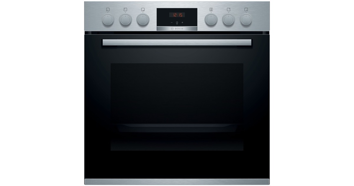Das Herdset Bosch HND431CS62 überzeugt mit einem Backraumvolumen von 71 Litern und fünf Heizarten sowie einer zuschaltbaren Schnellaufheizfunktion. Das Set besteht aus dem Einbau-Herd HEA533BS2 und dem Elektro-Kochfeld NKN645GA2E. Die 3D-Heißluft sorgt für perfekte Backergebnisse auf bis zu drei Ebenen gleichzeitig dank optimaler Wärmeverteilung. Mit der energiesparenden Reinigungshilfe EcoClean Direct hat man kaum Putzaufwand dank einer speziellen Beschichtung der Rückwand, die Fette automatisch absorbiert. Die Granit-Emaillebeschichtung erleichtert die Reinigung des Innenraums zusätzlich. Das herdgesteuerte Elektro-Kochfeld NKN645GA2E mit umlaufendem Rahmen bietet vier HighSpeed-Kochzonen, davon eine Bräterzone und eine auf 21 cm erweiterbare Zweikreis-Kochzone. Die Glaskeramik-Oberfläche ist leicht zu reinigen. In puncto Sicherheit überzeugt das Kochfeld des HND431CS62 mit einer 4fach-Restwärmeanzeige und der Herd mit einem Kühlgebläse sowie einer Kindersicherung. Art.-Nr.: 1868315