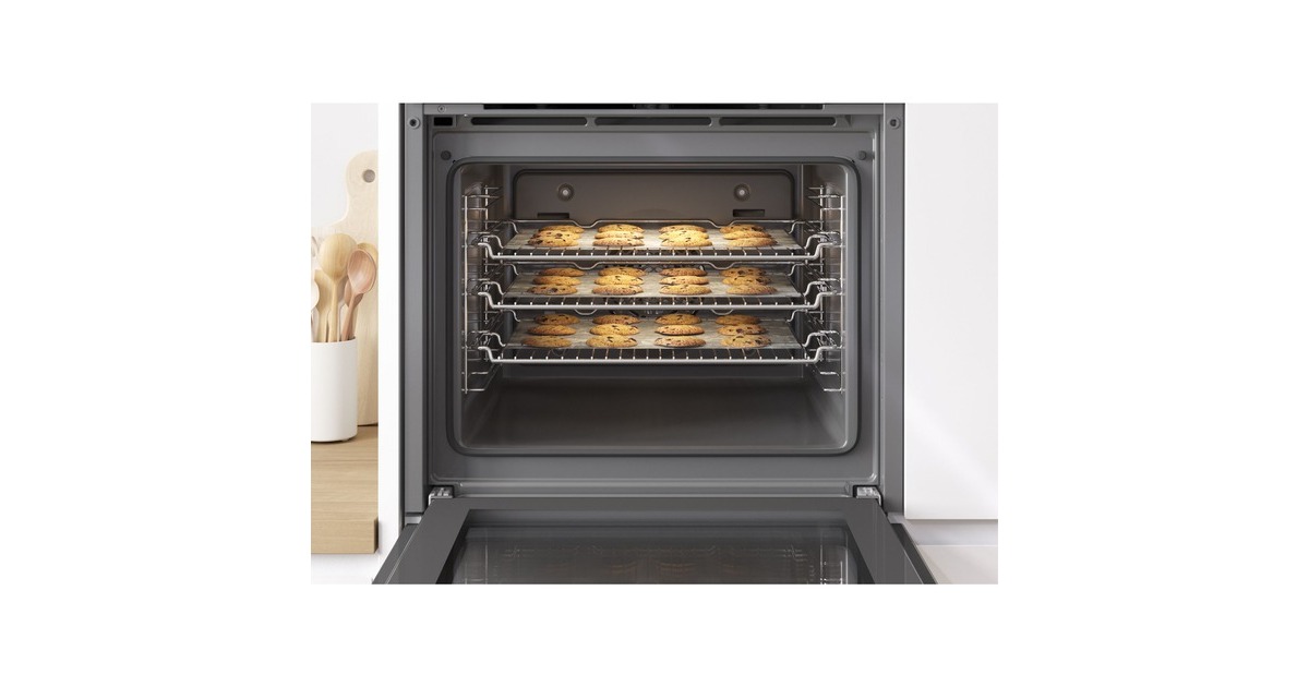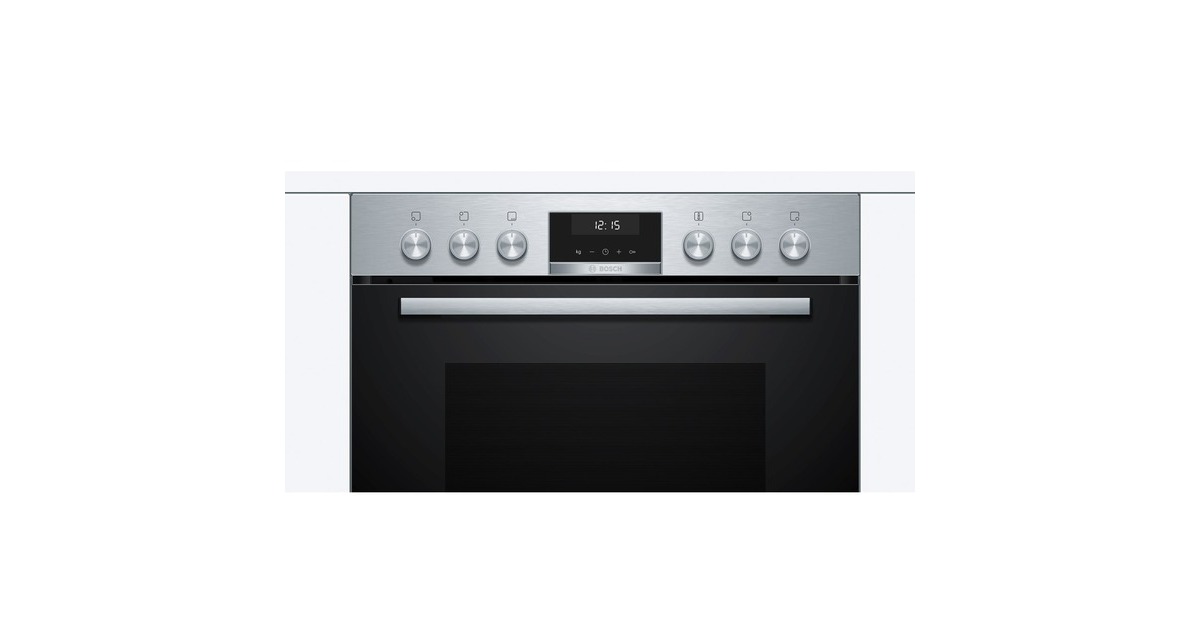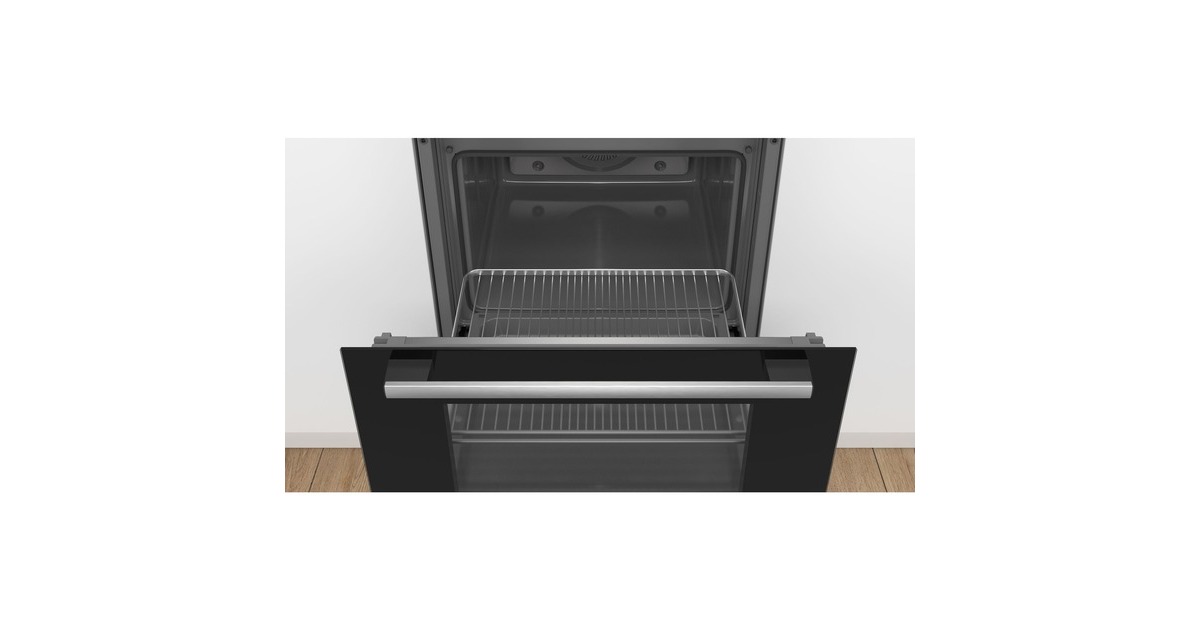 Das Herdset Bosch HND611LS66 überzeugt mit einem Backraumvolumen von 71 Litern und sieben Heizarten sowie einer zuschaltbaren Schnellaufheizfunktion. Das Set besteht aus dem Einbau-Herd HEB517BS0 und dem Elektro-Kochfeld NKN645GA2E. Die Granit-Emaillebeschichtung und das Hydrolytische Reinigungssystem erleichtern die Reinigung des Innenraums zusätzlich. Das herdgesteuerte Elektro-Kochfeld NKN645GA2E mit umlaufendem Rahmen bietet vier HighSpeed-Kochzonen, davon eine Bräterzone und eine auf 21 cm erweiterbare Zweikreis-Kochzone. Die Glaskeramik-Oberfläche ist leicht zu reinigen. In puncto Sicherheit überzeugt das Kochfeld des HND611LS66 mit einer 4fach-Restwärmeanzeige und der Herd mit einer geringen Türtemperatur sowie einer Kindersicherung. Art.-Nr.: 1868317
