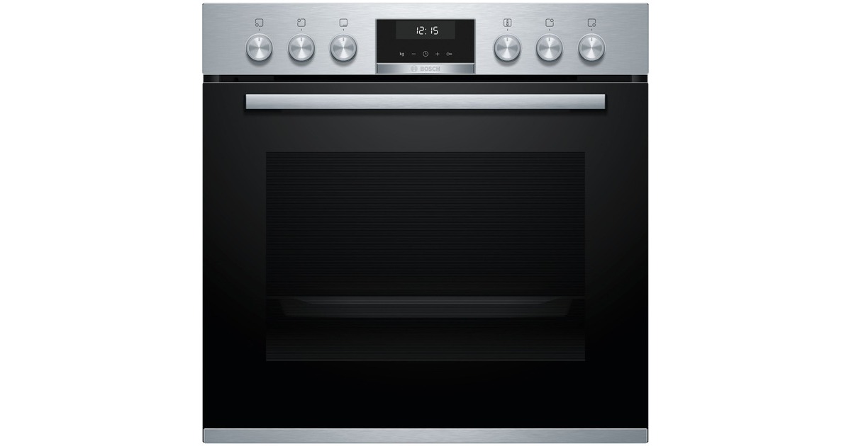Das Herdset Bosch HND612LS82 überzeugt mit einem Backraumvolumen von 71 Litern und sieben Heizarten sowie zehn Automaikprogramme und einer zuschaltbaren Schnellaufheizfunktion. Das Set besteht aus dem Einbau-Herd HEA517BS1 und dem Elektro-Kochfeld NKC845FB1D. Die Granit-Emaillebeschichtung und das Hydrolytische Reinigungssystem erleichtern die Reinigung des Innenraums zusätzlich. Das herdgesteuerte Elektro-Kochfeld des Bosch HND612LS82 mit Edelstahl-Rahmen bietet vier Elektro-Kochzonen davon drei zuschaltbare Zweikreis-Kochzonen, zwei mit Power Boost-Funktion und eine lässt sich zu einer Bräterzone erweitern. Die Glaskeramik-Oberfläche ist leicht zu reinigen und die 17 Leistungsstufen sowie der Timer mit Abschaltfunktion machen das Kochen und Braten zur Leichtigkeit. In puncto Sicherheit überzeugt das Kochfeld mit einer 2-stufigen Restwärmeanzeige je Kochzone, einer Kindersicherung und einer Wischschutzfunktion.Art.-Nr.: 1868318