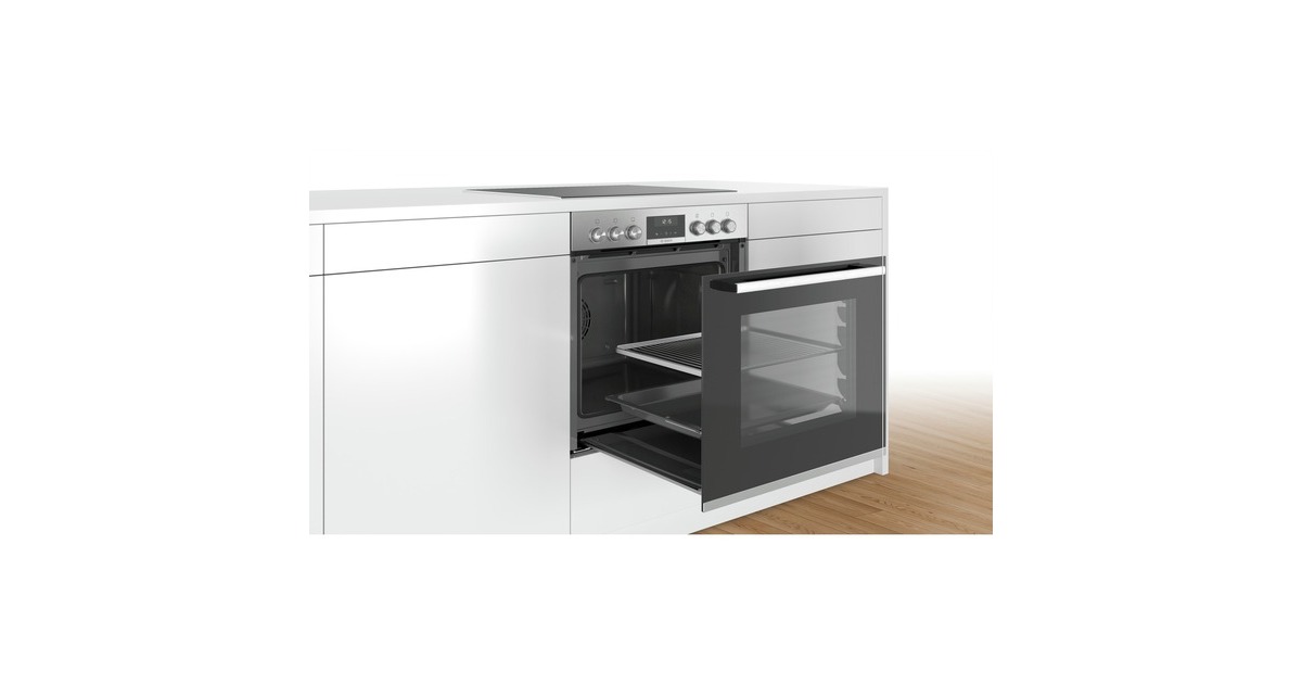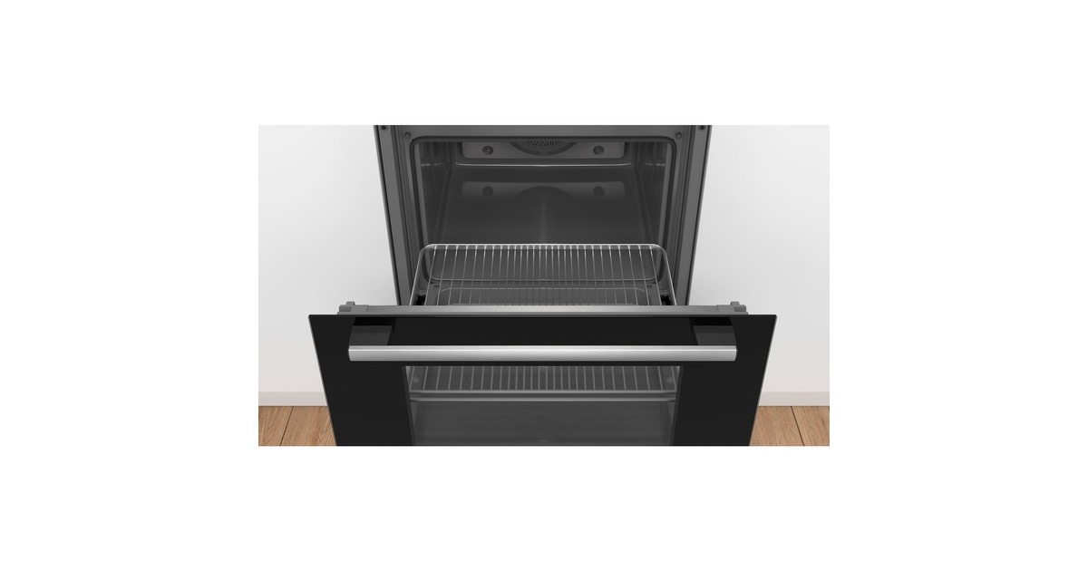 Das Herdset Bosch HND616LS66 besteht aus dem Einbau-Herd HEB517BS1 und dem Induktions-Kochfeld NVS645CB5E. Der Herd überzeugt mit einem Backraumvolumen von 71 Litern und stellt sieben Heizarten sowie zehn AutoPilot-Programme zum Kochen, Backen und Garen zur Verfügung. Die 3D-Heißluft sorgt für perfekte Backergebnisse auf bis zu drei Ebenen gleichzeitig dank optimaler Wärmeverteilung. Dank der Reinigungsoption, die speziell für die Reinigung von leichten Verschmutzungen eingesetzt werden kann, ist der Garraum nach dem Gebrauch ruckzuck wieder sauber, und der Backwagen ermöglicht eine leichtere Entnahme der Speisen. Das Induktionskochfeld stellt vier Kochzonen mit PowerBoost-Funktion und 17 Leistungsstufen zur Verfügung. Bei Verwendung von größerem Kochgeschirr können zwei Kochzonen zu einer größeren verbunden werden. Der Switch Off Timer schaltet die Kochzone am Ende der eingestellten Zeit aus (z. B. für gekochte Eier). Beide Geräte des Sets lassen sich über die sechs versenkbaren Backofendrehregler und das LC-Display sowie das ergänzende Touch-Display auf dem Kochfeld für ausgewählte Funktionen steuern. In puncto Sicherheit überzeugt das HND616LS66 mit einer 2-stufigen Restwärmeanzeige je Kochzone und einer Abschaltautomatik des Kochfelds sowie mit einer Kindersicherung, einem Kühlgebläse und einer kühlen Front des Herdes.Art.-Nr.: 100021425