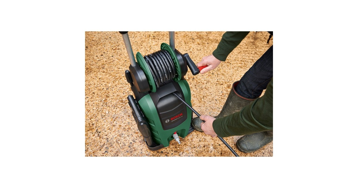Der Hochdruckreiniger AdvancedAquatak 140 von Bosch eignet sich für vielseitige Reinigungsaufgaben im Außenbereich und bietet drei verschiedene Düsen zur Auswahl, eine stufenlos verstellbare Flachstrahldüse, eine Rotordüse (Dreckfräser) und eine Hochdruckpistole mit Metallrohr. Der AdvancedAquatak 140 beseitigt auch festen, hartnäckigen Schmutz von verschiedensten Oberflächen wie großen Fahrzeugen, Terrassen oder Einfahrten. Bei der Reinigung spart die 550ml-Hochdruck-Reinigungsmitteldüse Zeit durch einen schnellen Waschmittelauftrag. Dank der Selbstansaugfunktion kann man auch Wasser aus Behältern wie z.B. Regenwassertanks zum Reinigen verwenden. Die praktische Lanzenhalterung, die Schlauchtrommel EasyRoll und die Schnellkupplungen des AdvancedAquatak 140 sorgen für höchsten Bedienkomfort, und der ausziehbare Griff aus Metall und die größeren Räder sorgen für mehr Mobilität und eine einfachere Lagerung.Art.-Nr.: 1624163