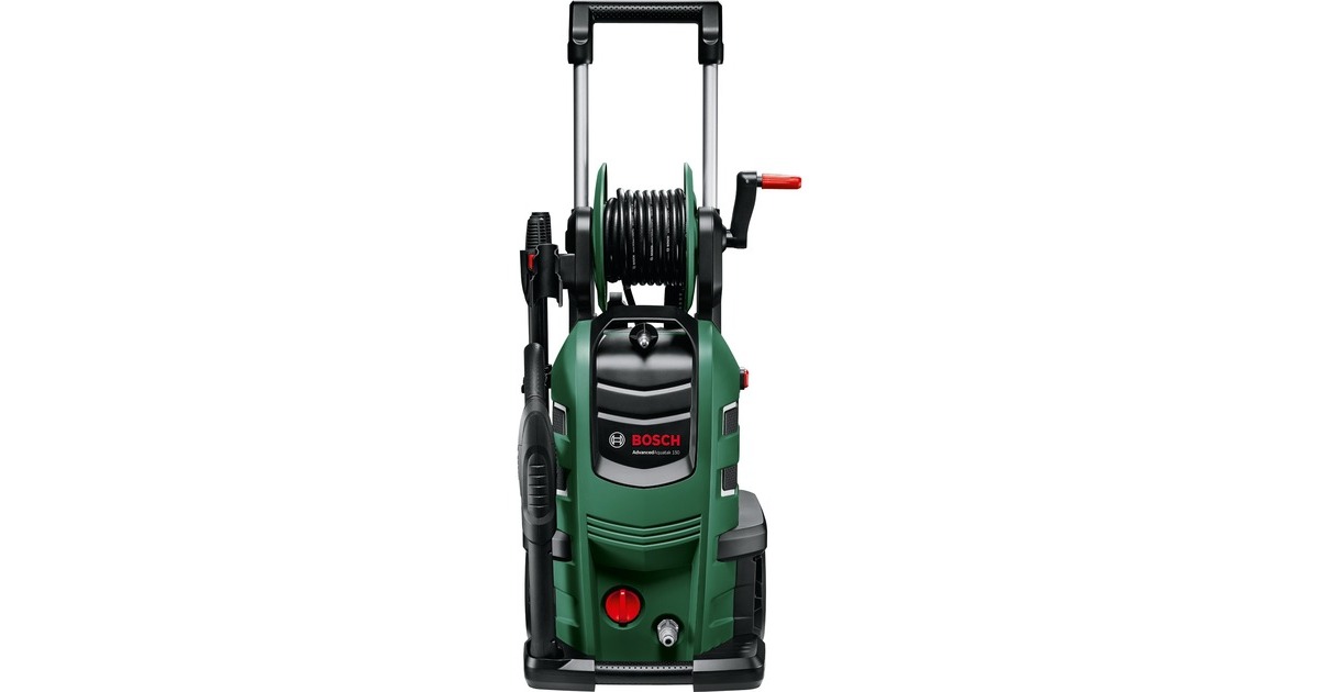 Der Hochdruckreiniger AdvancedAquatak 150 von Bosch eignet sich für vielseitige Reinigungsaufgaben im Außenbereich und bietet verschiedene Düsen und eine Hochdruckpistole mit Metallrohr zur Auswahl. Der AdvancedAquatak 150 beseitigt auch festen, hartnäckigen Schmutz von verschiedensten Oberflächen wie großen Fahrzeugen, Terrassen oder Einfahrten. Bei der Reinigung spart die 550ml-Hochdruck-Reinigungsmitteldüse Zeit durch einen schnellen Waschmittelauftrag. Dank der Selbstansaugfunktion kann man auch Wasser aus Behältern wie z.B. Regenwassertanks zum Reinigen verwenden. Die praktische Lanzenhalterung, die Schlauchtrommel EasyRoll und die Schnellkupplungen des AdvancedAquatak 150 sorgen für höchsten Bedienkomfort, und der ausziehbare Griff aus Metall und die größeren Räder sorgen für mehr Mobilität und eine einfachere Lagerung.Art.-Nr.: 1624369