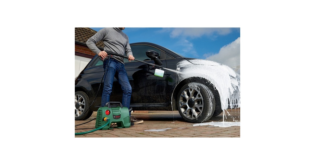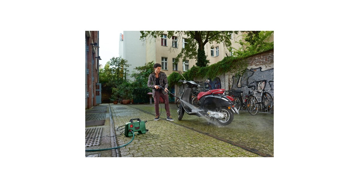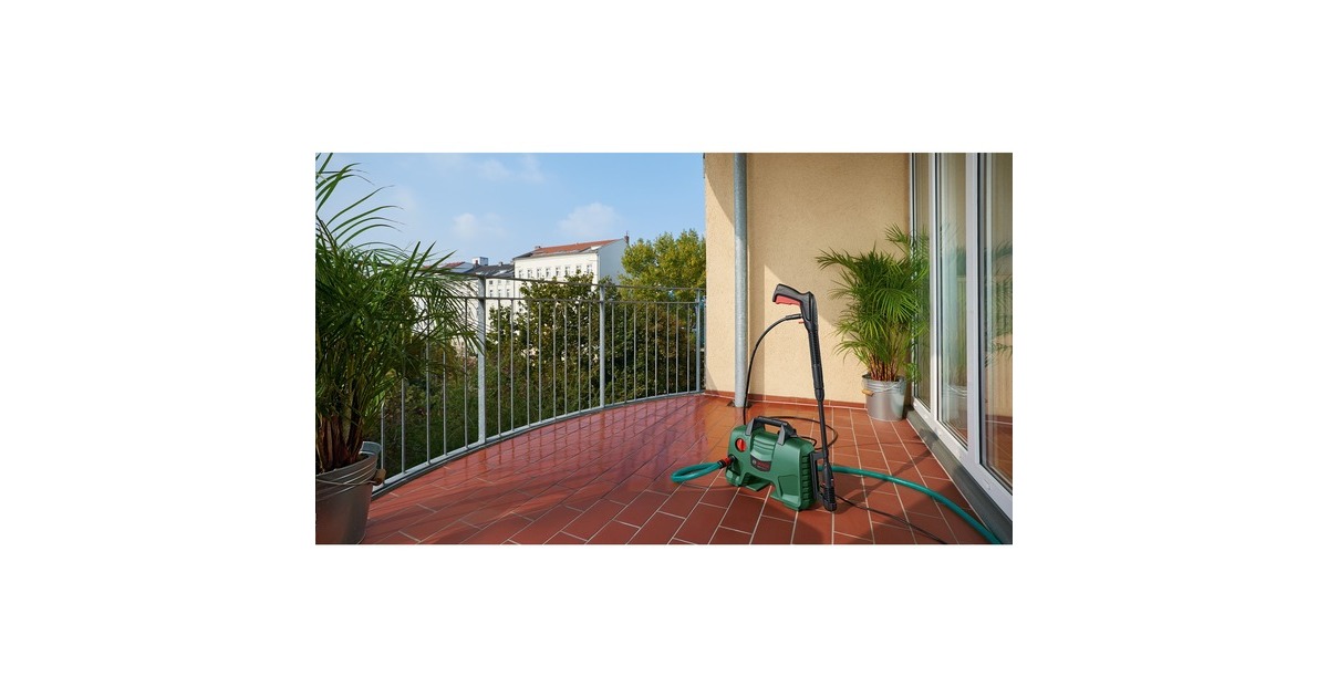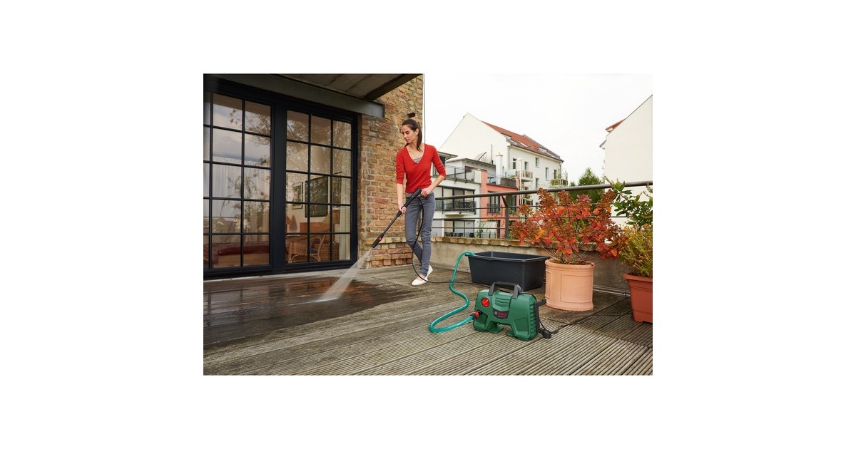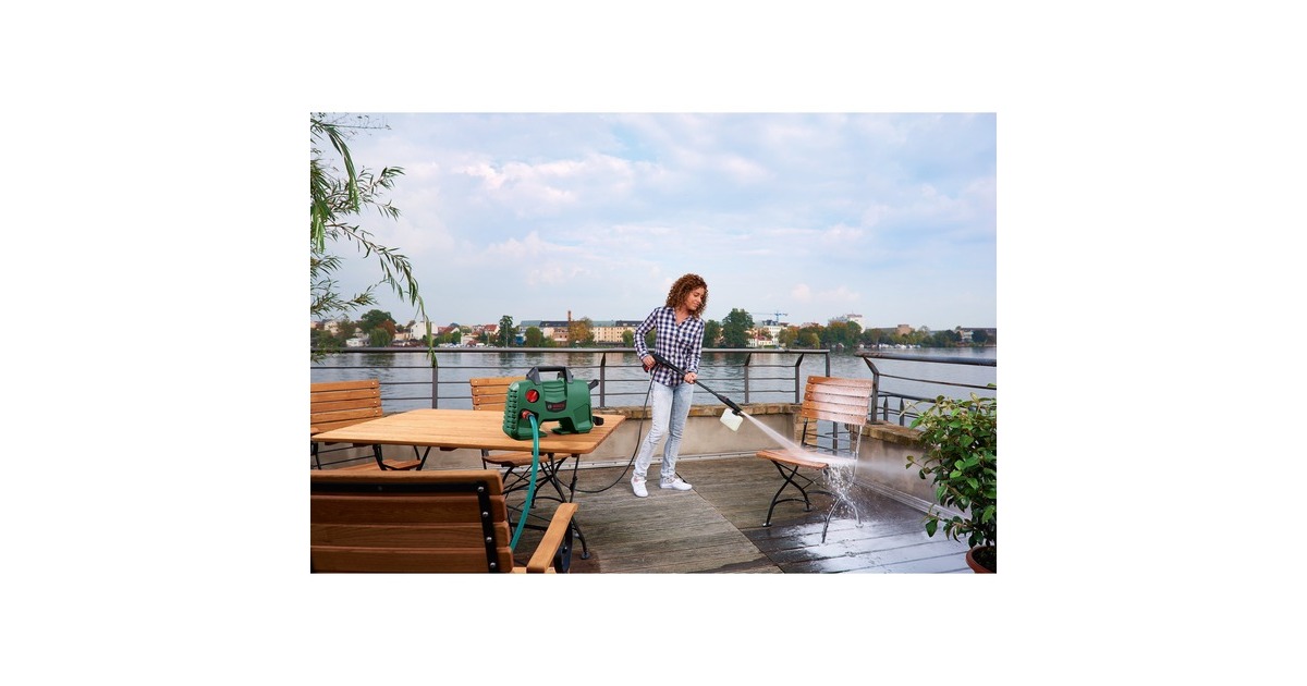 Der Hochdruckreiniger EasyAquatak 110 von Bosch eignet sich für kleine bis mittelschwere Reinigungsaufgaben im Außenbereich und bietet drei verschiedene Düsen zur Auswahl, eine stufenlos verstellbare Flachstrahldüse, eine Rotordüse (Dreckfräser) und eine Hochdruckpistole. Bei der Reinigung spart die 450ml-Hochdruck-Reinigungsmitteldüse Zeit durch einen schnellen Waschmittelauftrag. Dank der Selbstansaugfunktion kann man auch Wasser aus Behältern wie z.B. Regenwassertanks zum Reinigen verwenden. Die praktische Lanzenhalterung und die Schnellkupplungen des EasyAquatak 110 sorgen für höchsten Bedienkomfort.Art.-Nr.: 1624173
