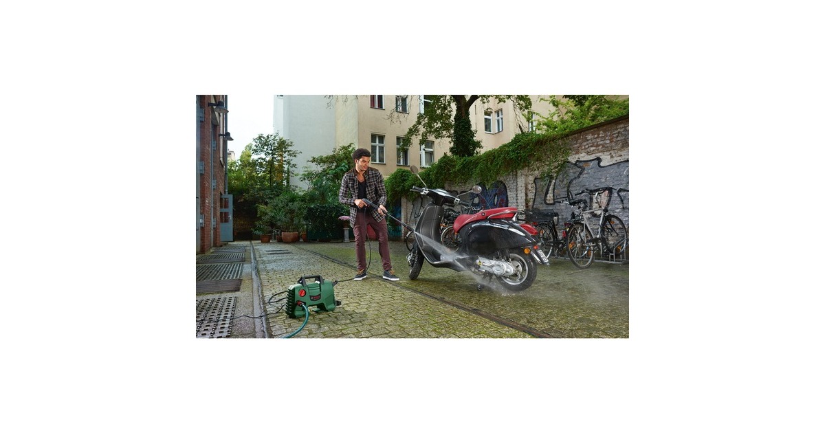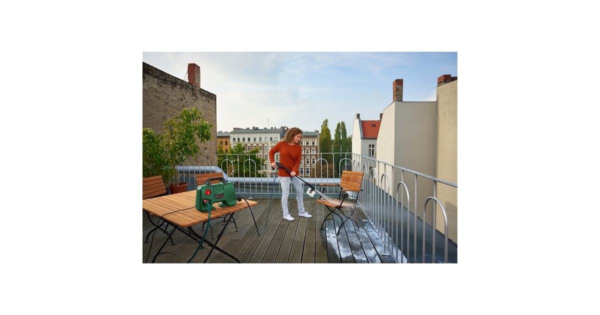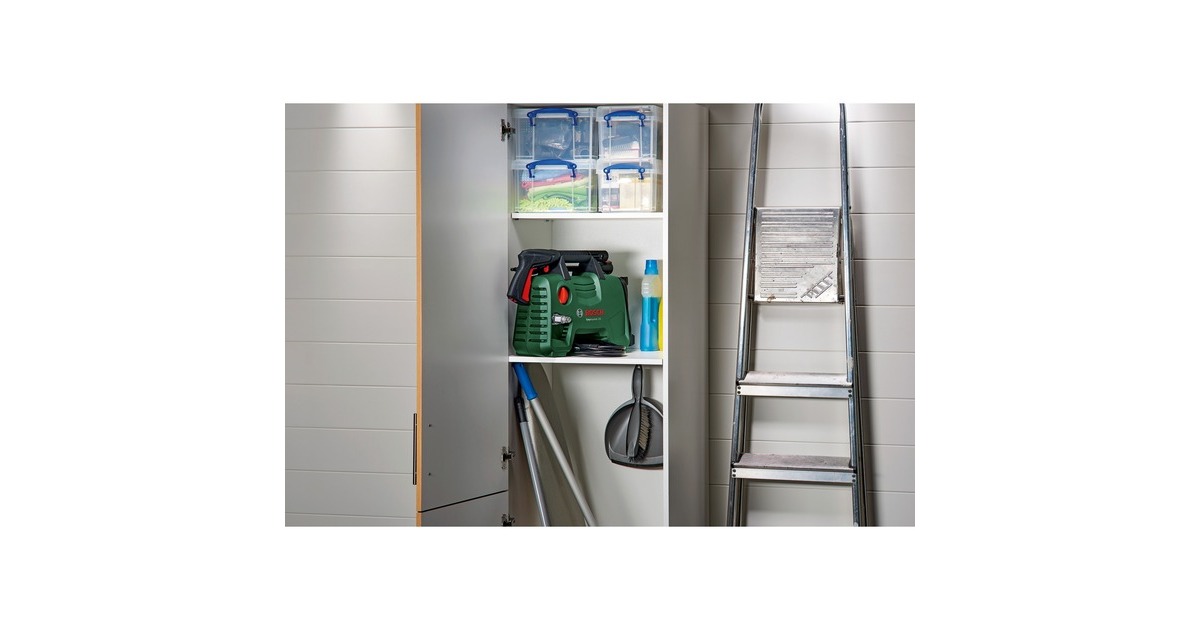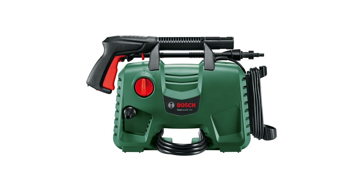 Der Hochdruckreiniger EasyAquatak 120 von Bosch eignet sich für kleine bis mittelschwere Reinigungsaufgaben im Außenbereich und bietet drei verschiedene Düsen zur Auswahl, eine stufenlos verstellbare Flachstrahldüse, eine Rotordüse (Dreckfräser) und eine Hochdruckpistole. Bei der Reinigung spart die 450ml-Hochdruck-Reinigungsmitteldüse Zeit durch einen schnellen Waschmittelauftrag. Dank der Selbstansaugfunktion kann man auch Wasser aus Behältern wie z.B. Regenwassertanks zum Reinigen verwenden. Die praktische Lanzenhalterung und die Schnellkupplungen des EasyAquatak 120 sorgen für höchsten Bedienkomfort.Art.-Nr.: 1624153