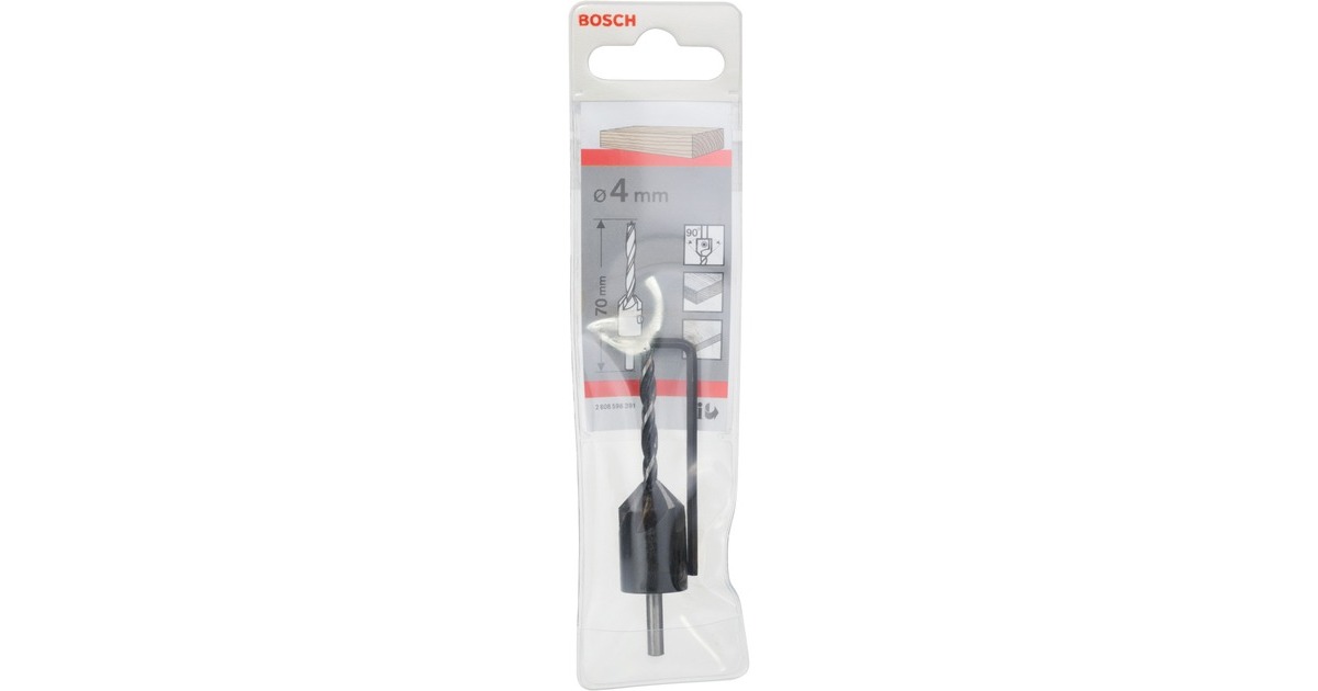 Der Holzspiralbohrer mit Senker von Bosch bohrt, senkt und entgratet in einem Arbeitsschritt. Auf einem Holzspiralbohrer montiert, können alle drei Vorgänge gleichzeitig erledigt werden. Der Senker eignet sich für hartes und weiches Holz, für laminierte und nicht laminierte Spanplatten und für Sperrholz. Dieser Multifunktionsbohrer aus Werkzeugstahl besitzt einen Senkwinkel von 90 Grad, fünf Schneidekanten und kann auch als Tiefenanschlag verwendet werden. Der Lieferumfang umfasst einen Sechskant-Stiftschlüssel, einen Holzspiralbohrer und einen auf dem Aufsteckhalter montierten verstellbaren Kegelsenker. Der Holzbohrer mit Senker ist für Standbohrmaschinen und Bohrschrauber geeignet.Art.-Nr.: 1202150