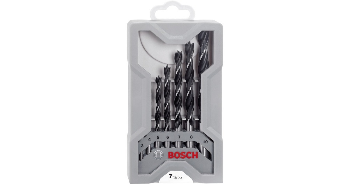 Das 7-teilige Bosch Holzbohrer-Set Professional eignet sich für präzise Bohrungen in Holz. Es kann ebenso für Durchgangs und Sacklochbohrungen verwendet werden. Der Holzbohrer ist ein sehr scharfer Bohrer mit Zentrierspitze für eine exakte Positionierung des Bohrlochs. Die präzisionsgeschliffenen Vorschneider erzeugen ausrissfreie Löcher. Die beiden Nuten verhindern dabei, dass Bohrmehl das Loch verstopft, und transportieren es ab. Diese Bohrer sind für Weich- und Hartholz geeignet, und haben einen zylindrischen Schaft.Art.-Nr.: 1455743