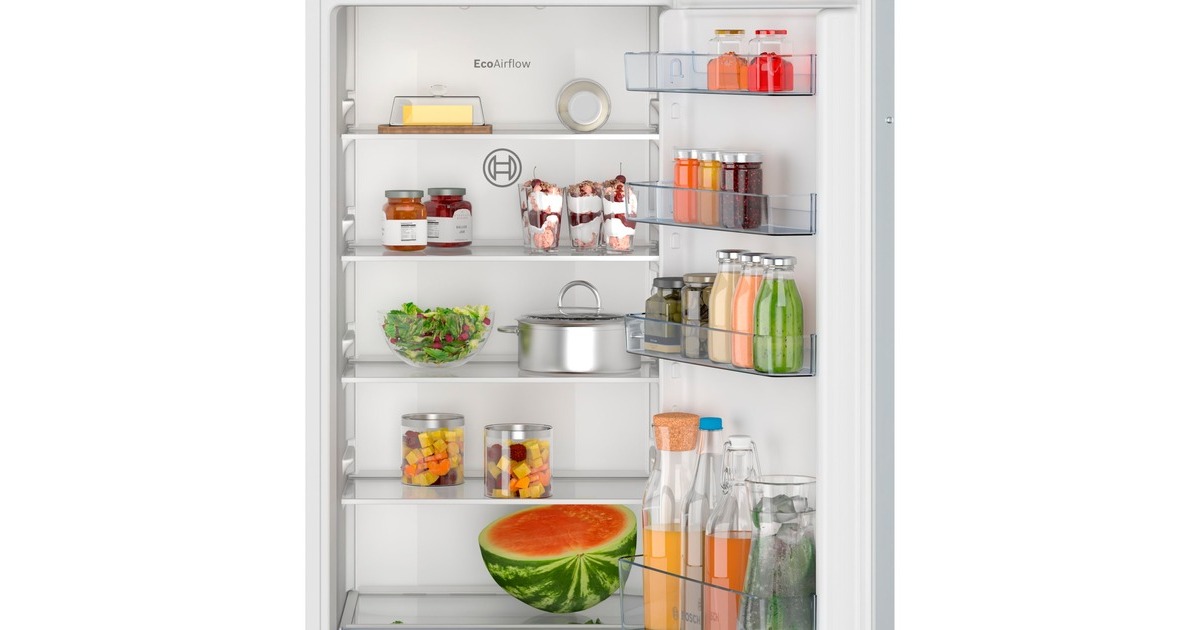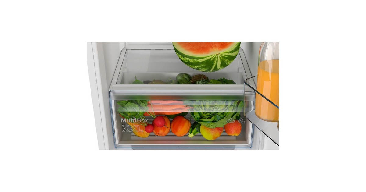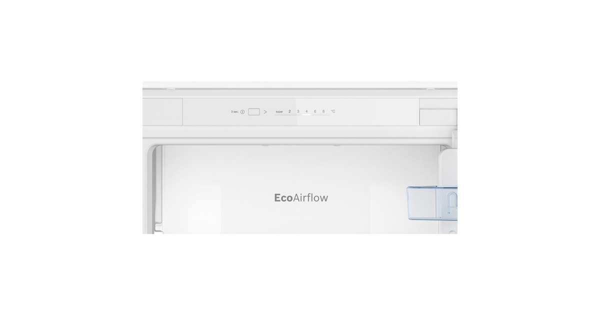 Der Einbau-Kühlschrank Bosch KIR41NSE0 ist mit einem Gesamtnutzinhalt von 204 Litern ideal für den mittelgroßen Haushalt geeignet und lässt sich dank seines wechselbaren Türanschlags flexibel in die Küchen integrieren. Ausgestattet ist er mit fünf Abstellflächen aus Sicherheitsglas, davon vier höhenverstellbar, einer transparenten MultiBox XXL mit Wellenboden für Obst und Gemüse sowie vier Türfächern. EcoAirflow sorgt für optimale Luftzirkulation und ein konstantes Temperaturniveau im Kühlbereich und die SuperKühlen-Funktion kühlt neu eingelegte Lebensmittel schneller, um bereits Gekühltes zu schützen. Mit einem Stromverbrauch von 101 kWh im Jahr ist der KIR41NSE0 in die Energieeffizienzklasse E eingestuft.Art.-Nr.: 1829930