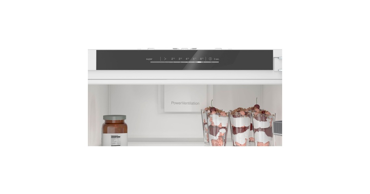 Der Einbau-Vollraumkühlschrank Bosch KIR81VFE0 ist mit einem Gesamtnutzinhalt von 310 Litern ideal für den großen Haushalt geeignet und lässt sich dank seines wechselbaren Türanschlags flexibel in die Küchen integrieren. Ausgestattet ist er mit sieben Abstellflächen aus Sicherheitsglas, davon fünf höhenverstellbar, zwei transparenten MultiBoxen XXL mit Wellenboden für Obst und Gemüse sowie fünf Türfächern. Fresh Sense passt die Innentemperatur des Kühlschranks entsprechend den Veränderungen der Außentemperatur an. Mit der SuperKühlen-Funktion wird die Temperatur per Knopfdruck abgesenkt (mindestens 2°C), damit die frischen Einkäufe auf der richtigen Temperatur bleiben. Mit einem Stromverbrauch von 114 kWh im Jahr ist der KIR81VFE0 in die Energieeffizienzklasse E eingestuft.Art.-Nr.: 100021317