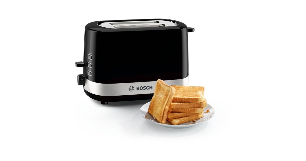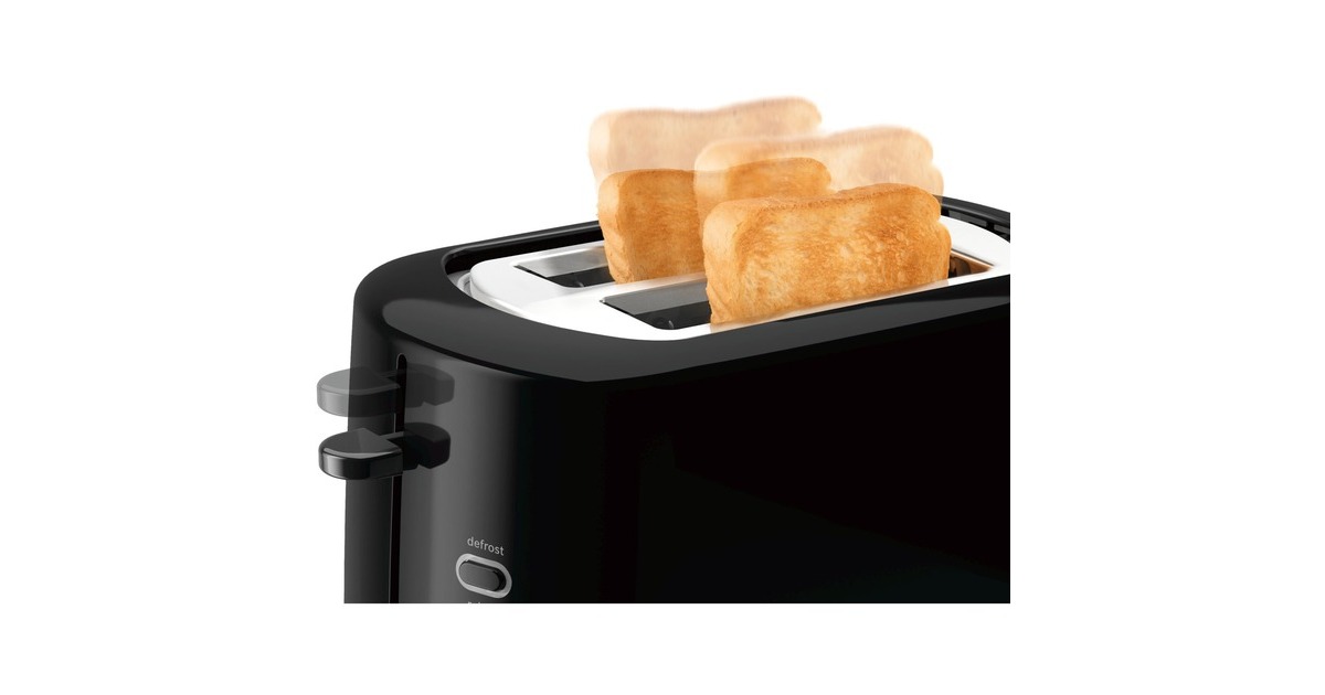 Der Kompakt Toaster TAT7403 von Bosch bietet Platz für zwei Toastscheiben. Mit der stufenlos einstellbaren elektronischen Röstgradkonstante lässt sich der gewünschte Bräunungsgrad einstellen. Die automatische Brotzentrierung, die Flächenheizung und die elektronische Bräunungsgradkontrolle sorgen für ein optimales und gleichbleibendes Röstbild. Praktisch ist außerdem die Lift-Funktion zum einfachen Entnehmen kleiner Brotscheiben, die beleuchtete Stop-Taste, die Auftau- und Aufknusperfunktion sowie der integrierte und versenkbare Brötchen-Aufsatz. Die herausnehmbare Krümelschublade vereinfacht die Reinigung, und die automatische Sicherheitsabschaltung, wenn sich der Toast verklemmt, machen die Bedienung des Toasters TAT7403 nicht nur einfach, sondern auch sicher.Art.-Nr.: 1617327