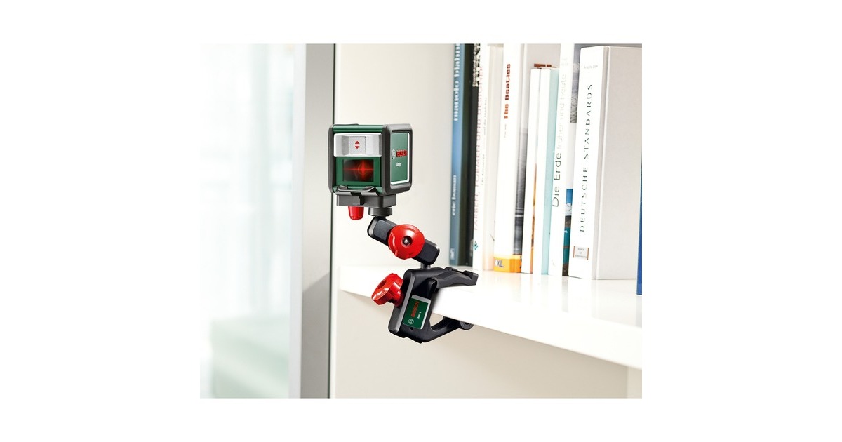 Der Kreuzlinienlaser Quigo projiziert gleichzeitig eine horizontale und eine vertikale Laserlinie und erleichtert mit seinen automatisch gerade ausgerichteten Linien das präzise Anzeichnen von Gegenständen oder Mustern. Der Quigo bietet eine maximale Arbeitsreichweite von 10 Metern und eignet sich perfekt zum Anbringen von Bildern oder Regalen, zum Ansetzen von Tapete, Bordüren oder Fliesen und zum Ausrichten verschiedener Deko-Objekte. Außerdem verfügt der Quigo über ein integriertes 1/4''-Stativgewinde und wird mit der Universalklemme MM2 und einer Adapterplatte zur einfachen, flexiblen Positionierung an Fensterbänken oder Leitern geliefert.Art.-Nr.: 1824750