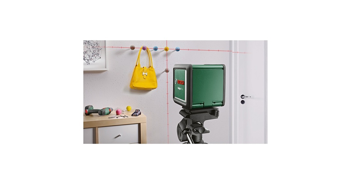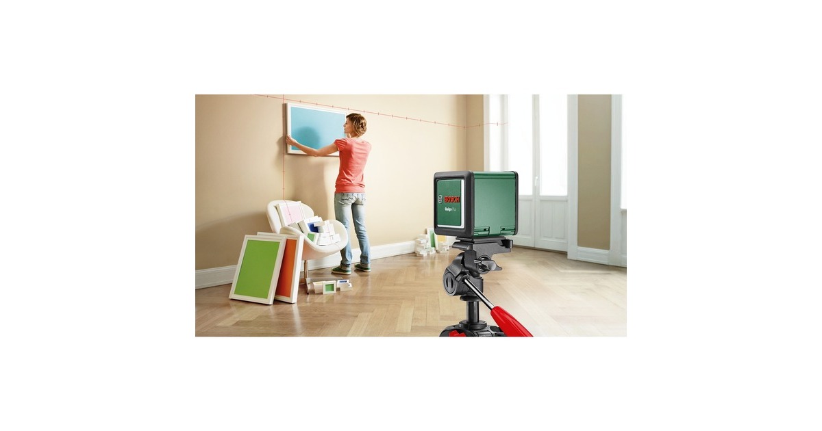 Der Kreuzlinienlaser Quigo Plus projiziert gleichzeitig eine horizontale und eine vertikale Laserlinie und erleichtert mit seinen automatisch gerade ausgerichteten Linien das präzise Anzeichnen von Gegenständen. Er ermöglicht auch das Ausrichten komplexer Muster in gleichen und variablen Abständen durch die Strich-Markierungen auf der Laserlinie. Mit der Zieltafel wird der Laser im 90°-Winkel zur Wand aufgestellt, dann können die Abstände durch die richtige Entfernung zur Wand angepasst werden. Der Quigo Plus bietet eine maximale Arbeitsreichweite von 7 Metern und eignet sich perfekt zum Anbringen von Bildern oder Regalen, zum Ansetzen von Tapete, Bordüren oder Fliesen und zum Ausrichten verschiedener Deko-Objekte. Außerdem verfügt der Quigo Plus über ein Aluminiumstativ, mit dem das genaue Einstellen der Laserhöhe zwischen 37cm und 1,1 Meter kein Problem ist.Art.-Nr.: 1824752