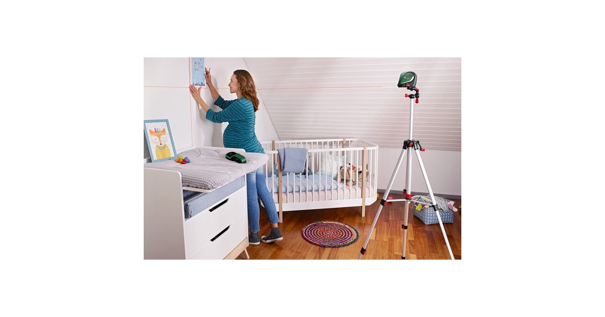 Zum Ermitteln von waagerechten und senkrechten Linien sowie Lotpunkten im Innenbereich |