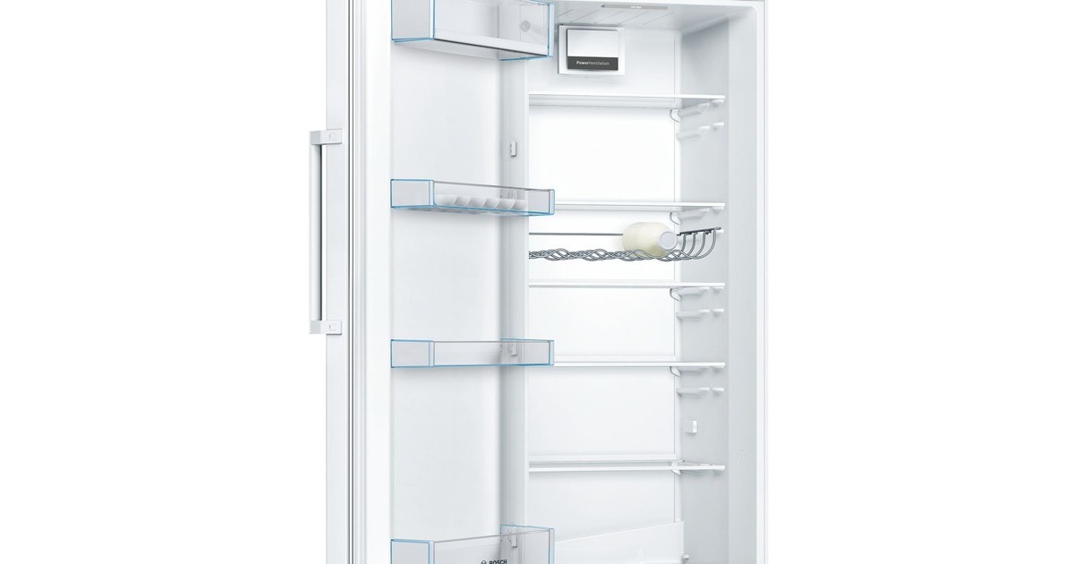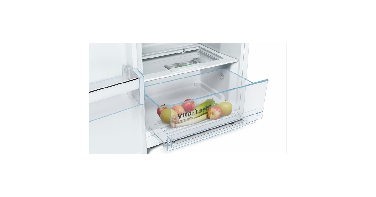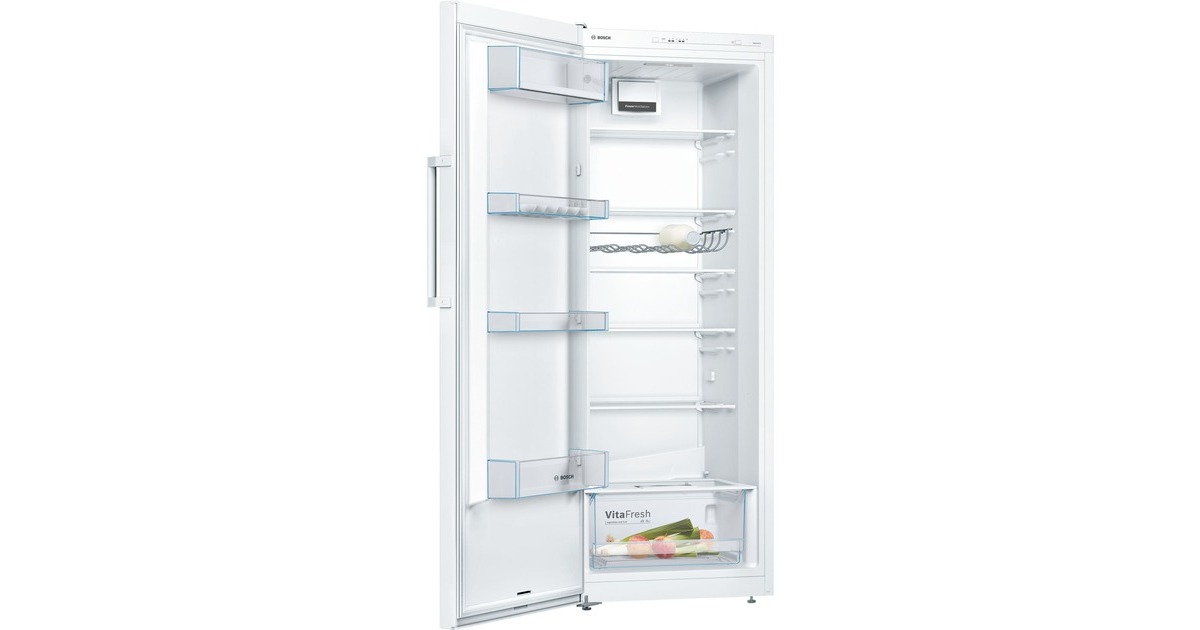Der Kühlschrank Bosch KSV29VWEP eignet sich mit einem Gesamtnutzinhalt von 290 Litern ideal für den großen Haushalt und bietet jede Menge Platz für die übersichtliche Lagerung frischer Lebensmittel. Ausgestattet ist er mit sechs Abstellflächen aus Sicherheitsglas, davon vier höhenverstell- und fünf ausziehbar, sowie vier Türfächern, davon ein Butter-/Käsefach. In der VitaFresh Box bleibt Obst und Gemüse länger vitaminreich und frisch. FreshSense sorgt für eine konstante Temperatur durch intelligente Sensortechnik und mit der SuperKühlen-Funktion wird die Temperatur im Kühlraum schnell gesenkt, sodass beim Einlagern wärmerer Lebensmittel ein unerwünschter Temperaturanstieg bereits gekühlter Speisen verhindert wird. Mit einem Stromverbrauch von 109 kWh im Jahr ist der KSV29VWEP in die Energieeffizienzklasse E eingestuft.Art.-Nr.: 1660382