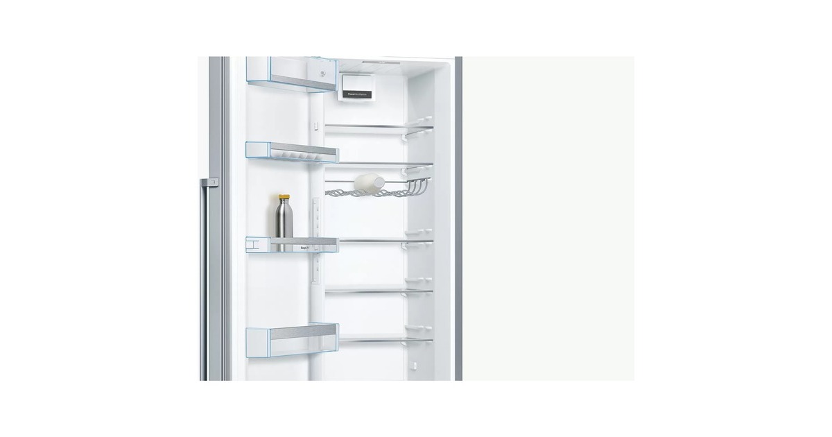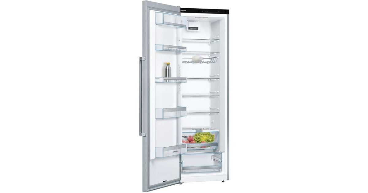 Der Kühlschrank Bosch KSV36AIDP eignet sich mit einem Gesamtnutzinhalt von 346 Litern ideal für den großen Haushalt und bietet jede Menge Platz für die übersichtliche Lagerung frischer Lebensmittel. Ausgestattet ist er mit sieben Abstellflächen aus Sicherheitsglas, davon fünf höhenverstell- und sechs ausziehbar, sowie fünf Türfächern, davon ein Butter-/Käsefach. In der VitaFresh plus Box bleibt Obst und Gemüse bis zu zweimal länger vitaminreich und frisch und die MultiBox auf Teleskopschienen mit Wellenboden ist ebenfalls ideal zur Lagerung von Obst und Gemüse geeignet. FreshSense sorgt für eine konstante Temperatur durch intelligente Sensortechnik und mit der SuperKühlen-Funktion wird die Temperatur im Kühlraum schnell gesenkt, sodass beim Einlagern wärmerer Lebensmittel ein unerwünschter Temperaturanstieg bereits gekühlter Speisen verhindert wird. Mit einem Stromverbrauch von 93 kWh im Jahr ist der KSV36AIDP in die Energieeffizienzklasse D eingestuft.Art.-Nr.: 1708714