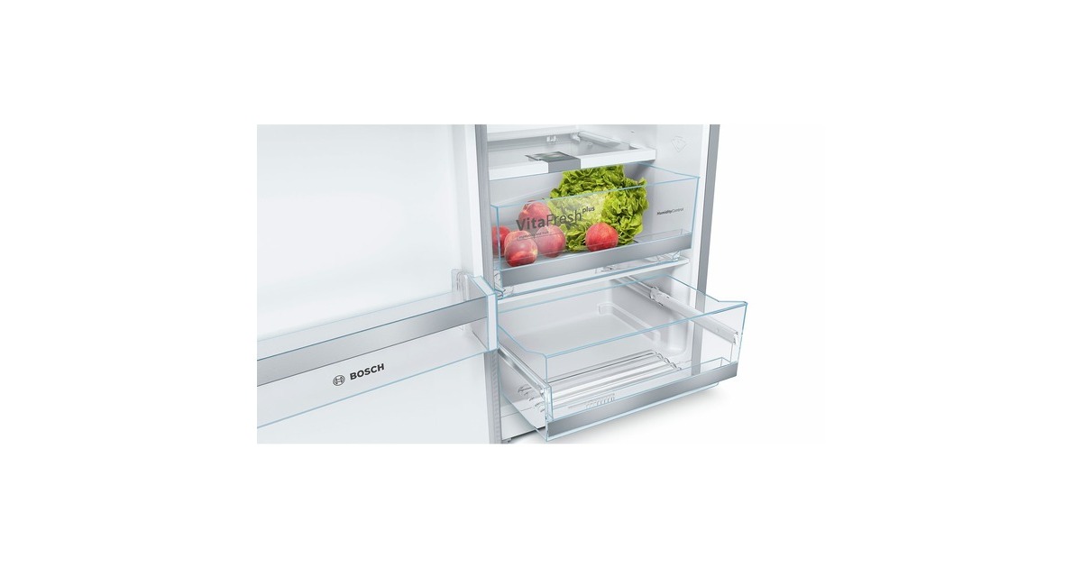 1 VitaFresh plus Box, 1 MultiBox auf Teleskopschienen mit Wellenboden, Flaschengitter/-Board |