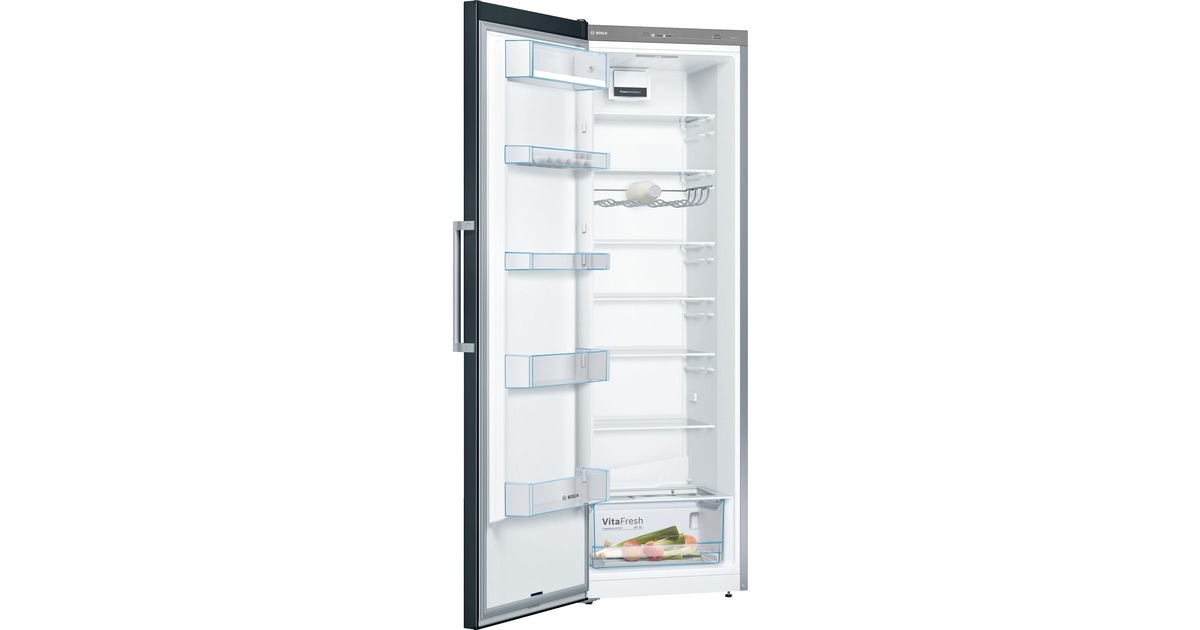Der Kühlschrank Bosch KSV36VBEP eignet sich mit einem Gesamtnutzinhalt von 346 Litern ideal für den großen Haushalt und bietet jede Menge Platz für die übersichtliche Lagerung frischer Lebensmittel. Ausgestattet ist er mit sieben Abstellflächen aus Sicherheitsglas, davon fünf höhenverstell- und sechs ausziehbar, sowie fünf Türfächern, davon ein Butter-/Käsefach. In der VitaFresh Box bleibt Obst und Gemüse länger vitaminreich und frisch. FreshSense sorgt für eine konstante Temperatur durch intelligente Sensortechnik und mit der SuperKühlen-Funktion wird die Temperatur im Kühlraum schnell gesenkt, sodass beim Einlagern wärmerer Lebensmittel ein unerwünschter Temperaturanstieg bereits gekühlter Speisen verhindert wird. Mit einem Stromverbrauch von 116 kWh im Jahr ist der KSV36VBEP in die Energieeffizienzklasse E eingestuft.Art.-Nr.: 1660387