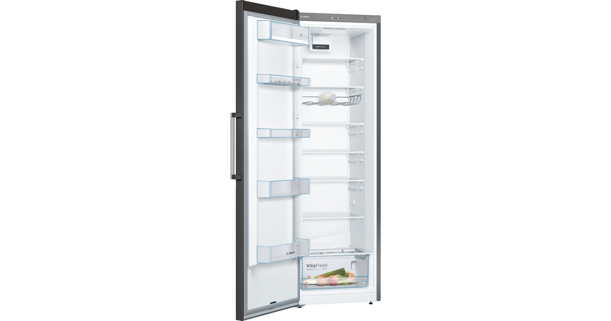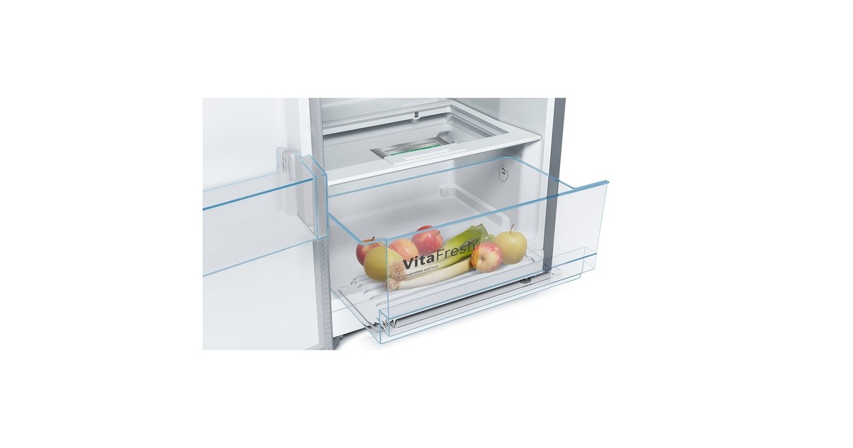Der Kühlschrank Bosch KSV36VXEP eignet sich mit einem Gesamtnutzinhalt von 346 Litern ideal für den großen Haushalt und bietet jede Menge Platz für die übersichtliche Lagerung frischer Lebensmittel. Ausgestattet ist er mit sieben Abstellflächen aus Sicherheitsglas, davon fünf höhenverstell- und sechs ausziehbar, sowie fünf Türfächern, davon ein Butter-/Käsefach. In der VitaFresh Box bleibt Obst und Gemüse länger vitaminreich und frisch. FreshSense sorgt für eine konstante Temperatur durch intelligente Sensortechnik und mit der SuperKühlen-Funktion wird die Temperatur im Kühlraum schnell gesenkt, sodass beim Einlagern wärmerer Lebensmittel ein unerwünschter Temperaturanstieg bereits gekühlter Speisen verhindert wird. Mit einem Stromverbrauch von 116 kWh im Jahr ist der KSV36VXEP in die Energieeffizienzklasse E eingestuft.Art.-Nr.: 1829862